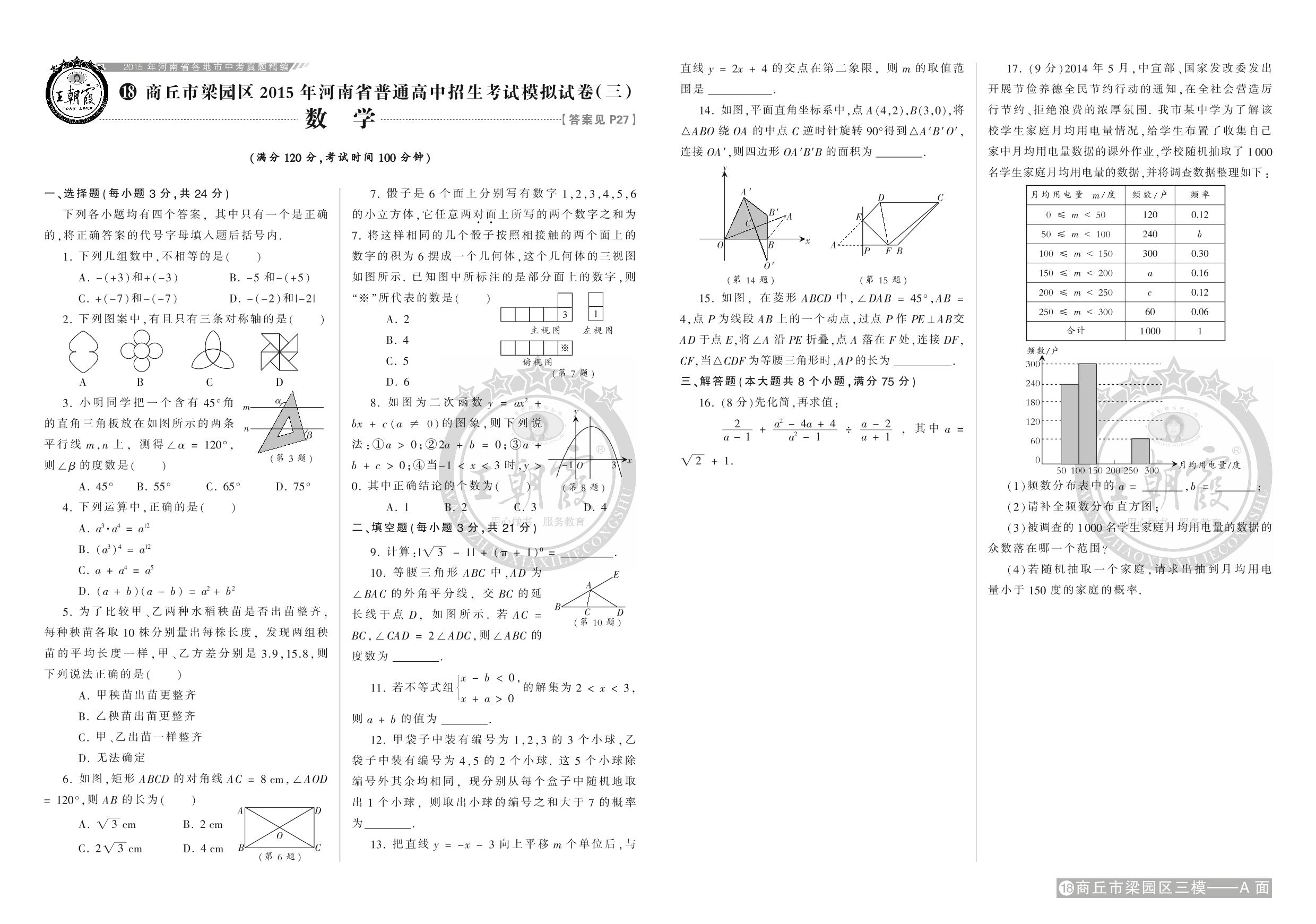 商丘市梁园区2015年河南省普通高中招生考试模拟试卷(三)【18】