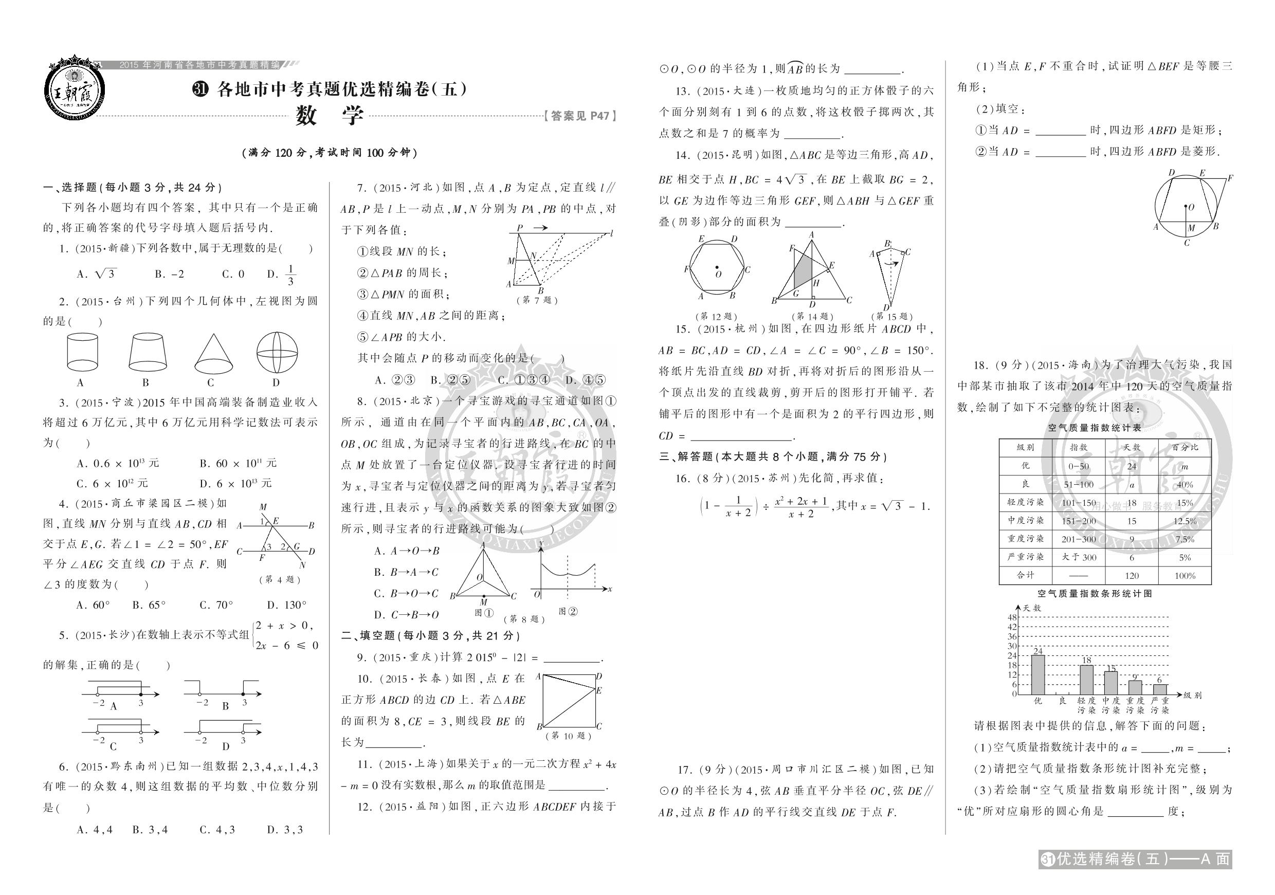 各地市中考真题优选精编卷(五)【31】