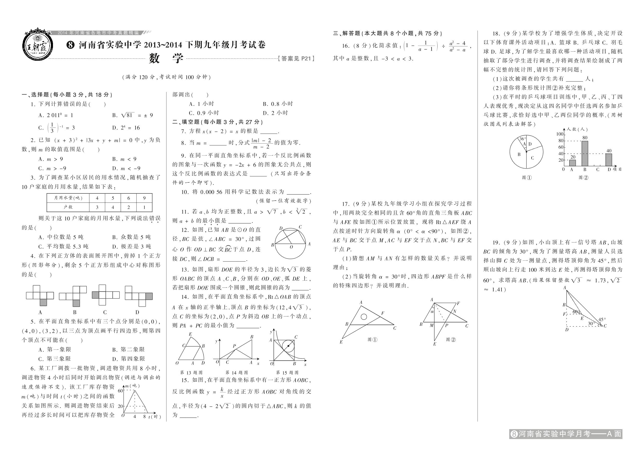 河南省实验中学2013~2014年下期九年级月考试卷【8】