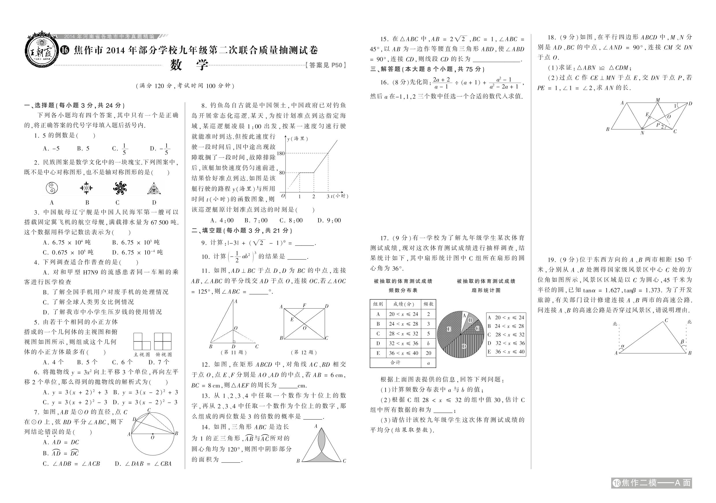 焦作市2014年部分学校九年级第二次联合质量抽测试卷【16】