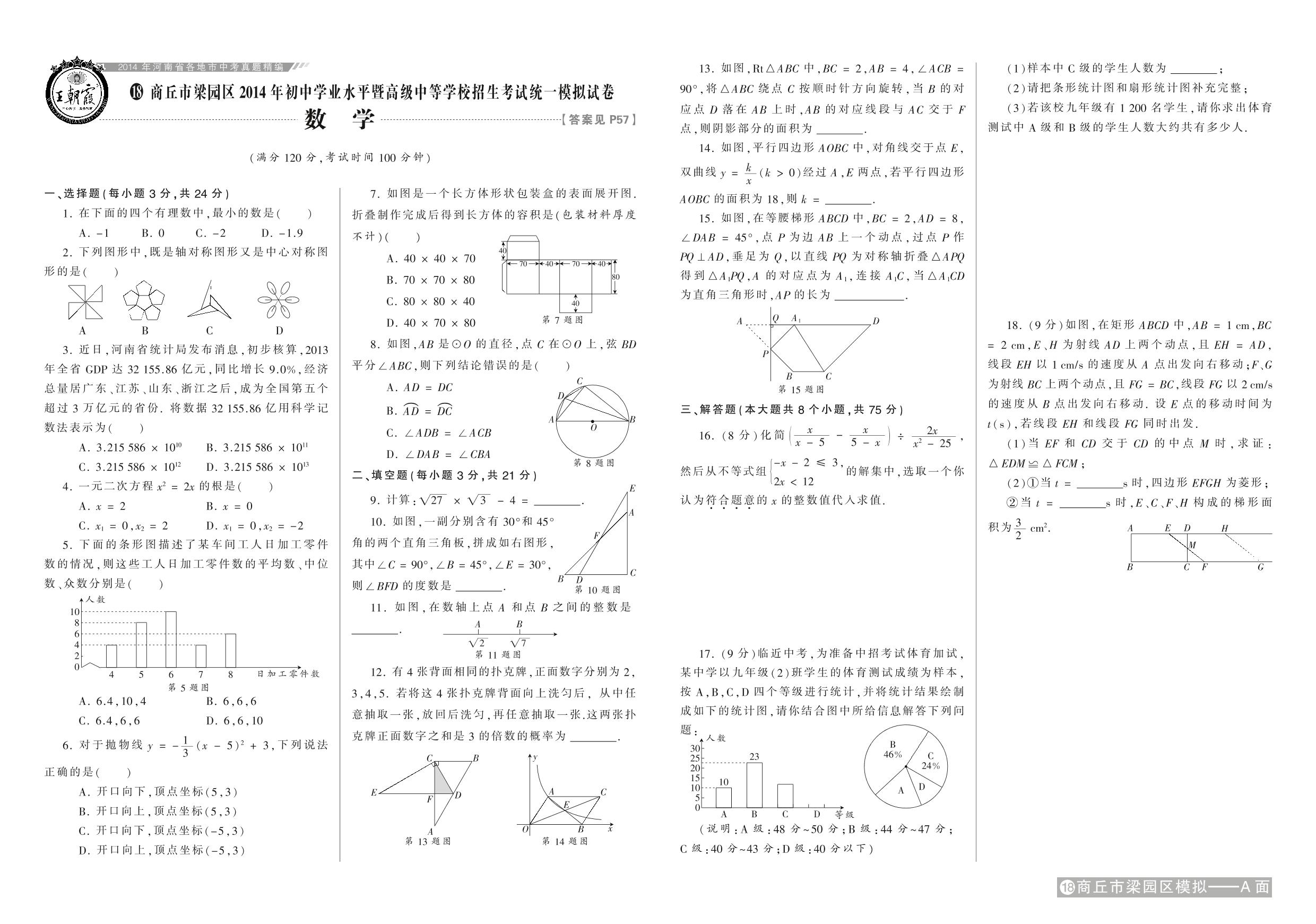 商丘市梁园区2014年初中学业水平暨高级中等学校招生考试统一模拟试卷【18】