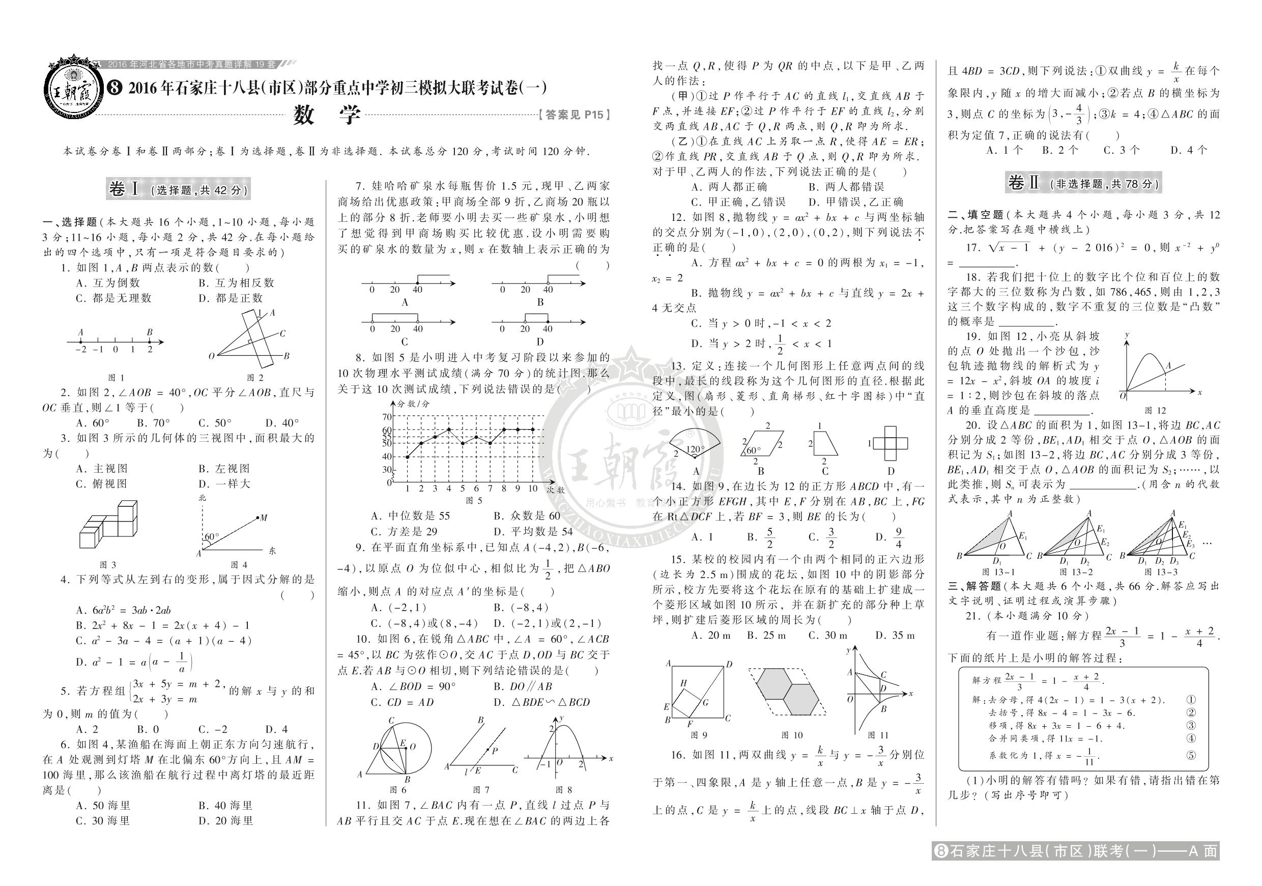 石家庄十八县(市区)部分重点中学初三模拟大联考试卷(一)【8】