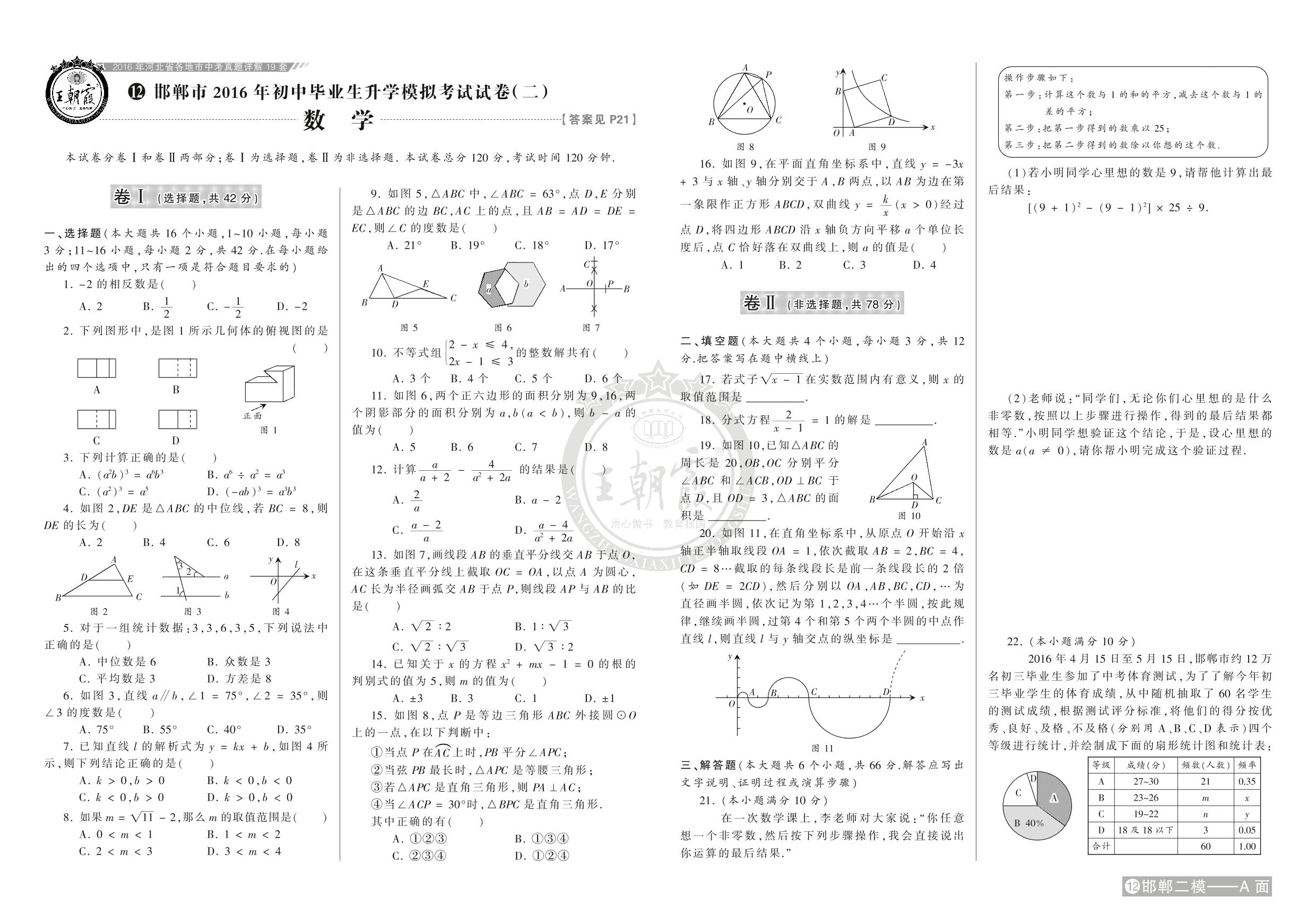 邯郸市2016年初中毕业生升学模拟考试试卷(二)【12】