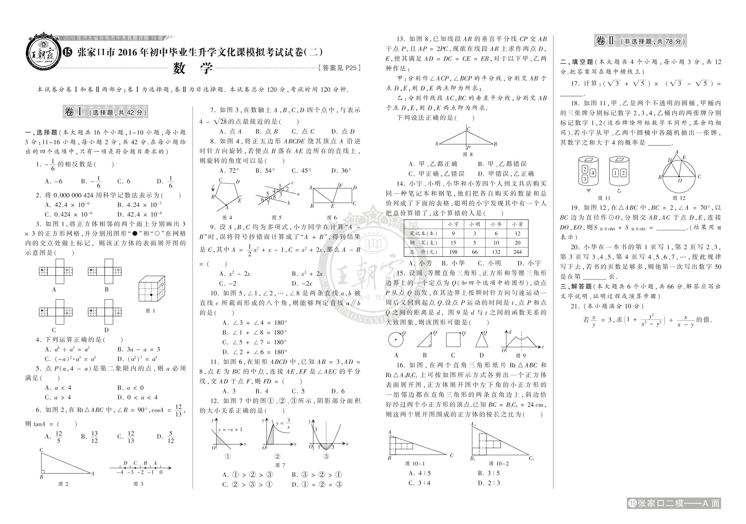 张家口市2016年初中毕业生升学文化课模拟考试试卷(二)【15】