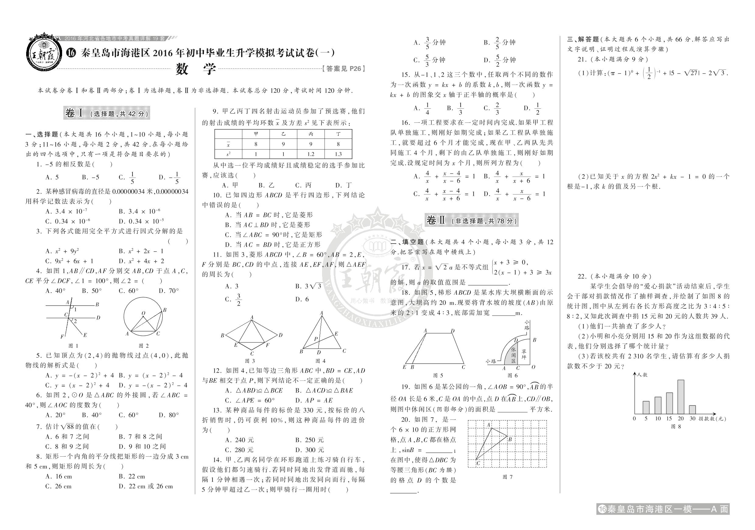 秦皇岛市海港区2016年初中毕业生升学模拟考试试卷(一)【16】