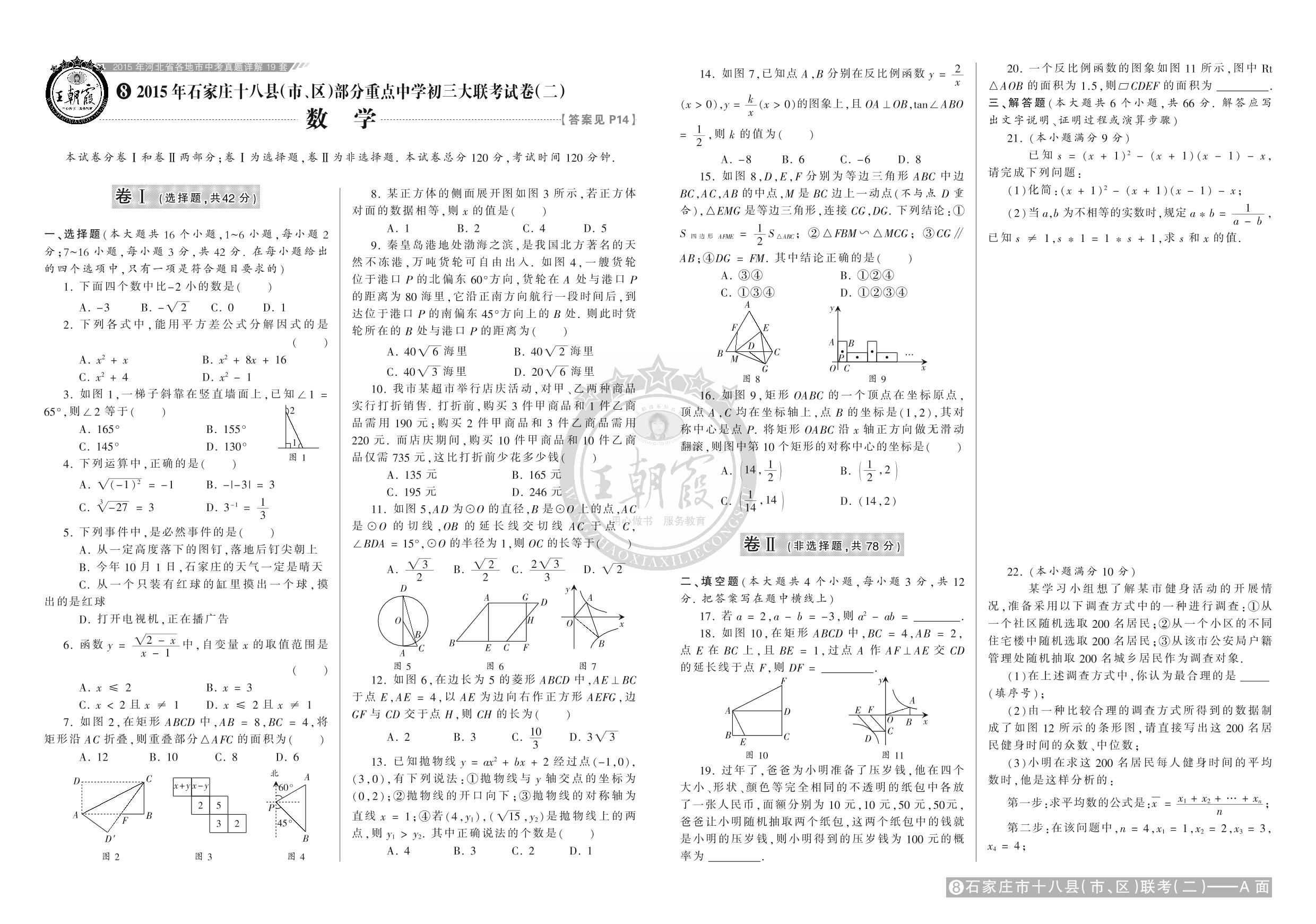 石家庄十八县(市、区)部分重点中学初三大联考试卷(二)【8】