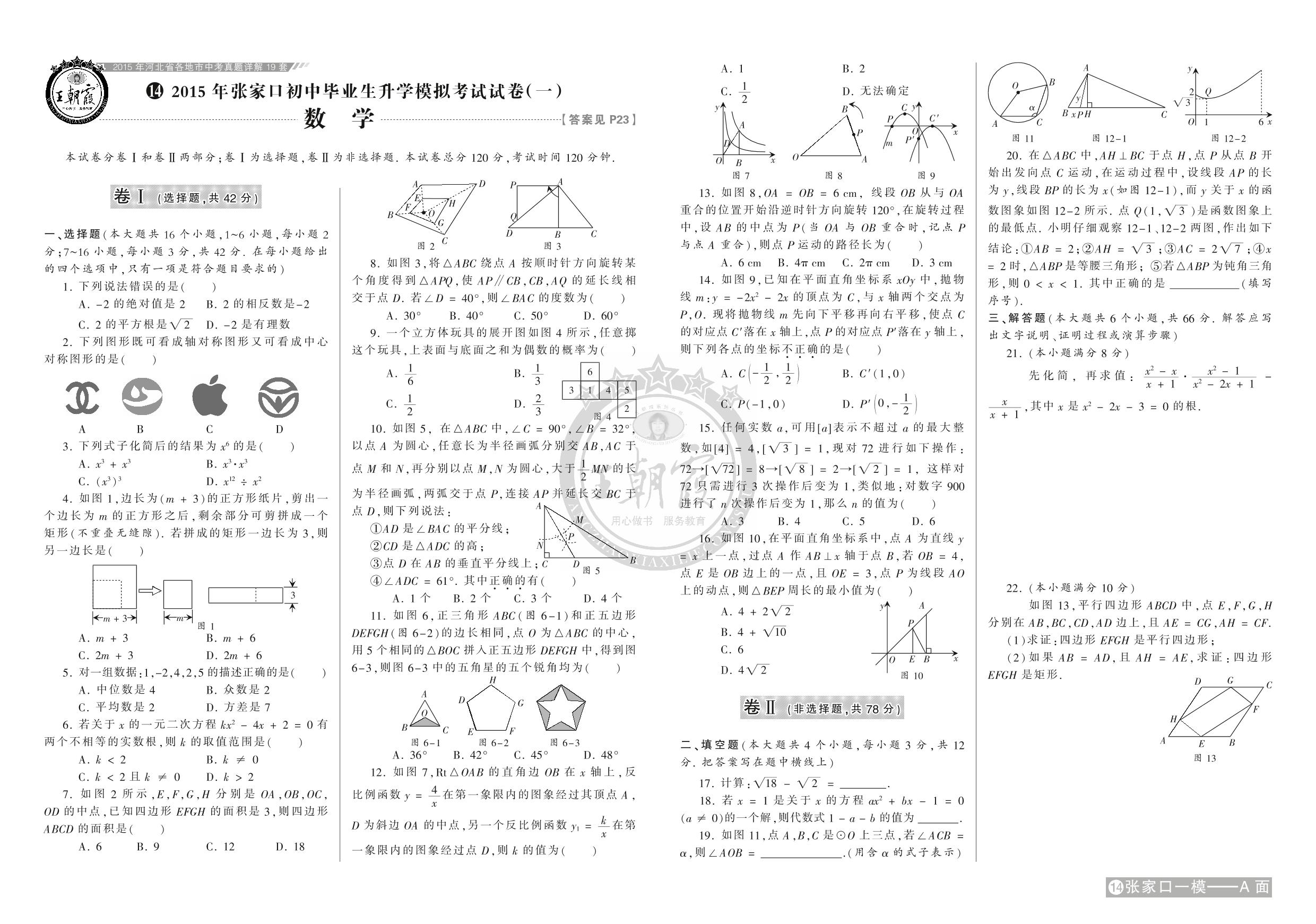 张家口初中毕业生升学模拟考试试卷(一)【14】
