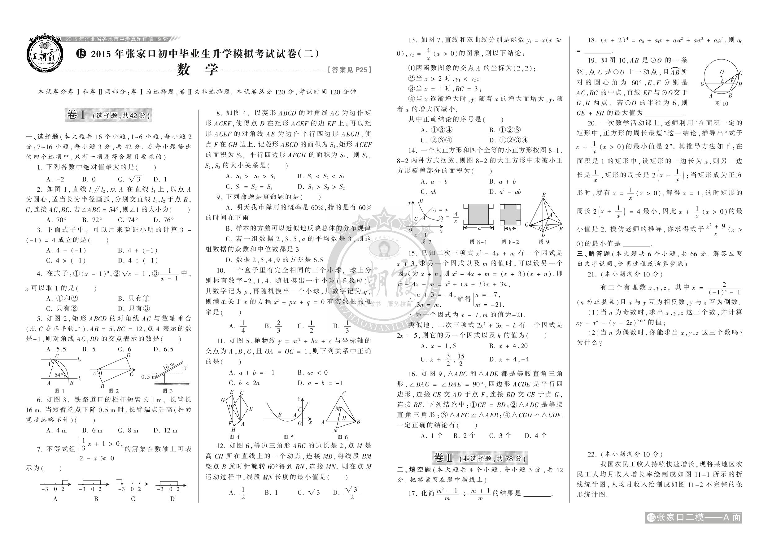 张家口初中毕业生升学模拟考试试卷(二)【15】