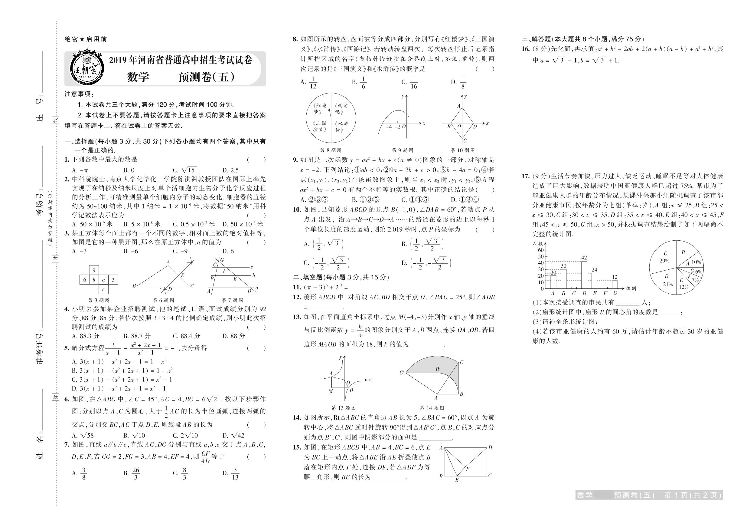2019年河南省普通高中招生考试试卷数学·预测卷(五)