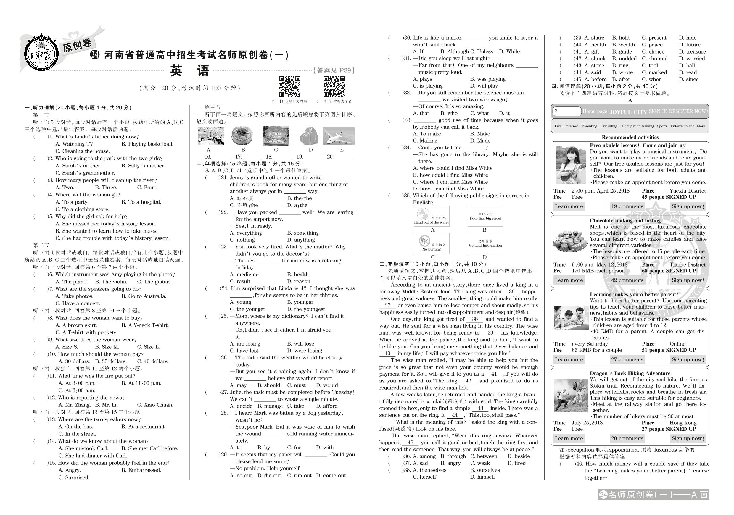河南省普通高中招生考试名师原创卷(一)【24】
