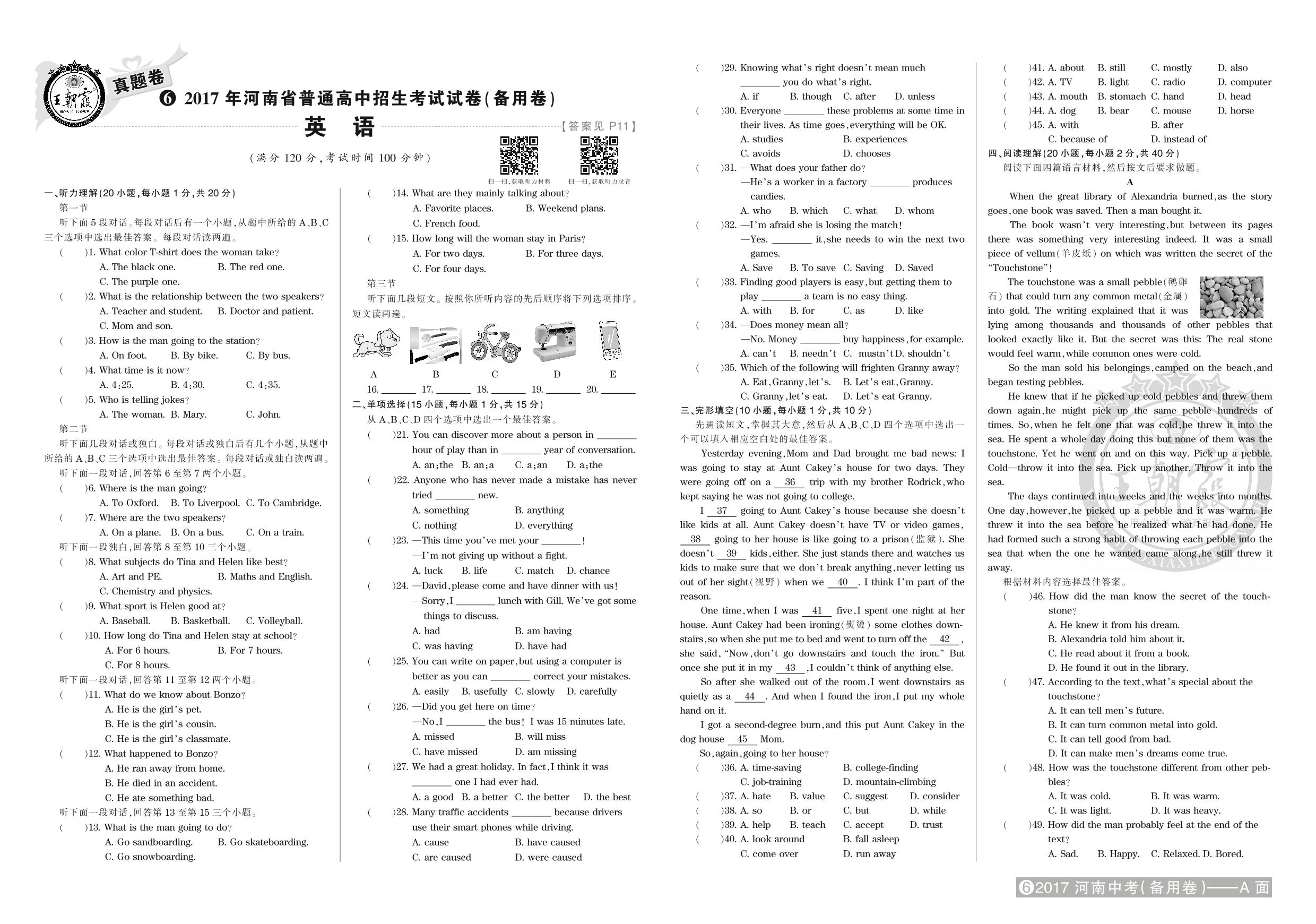2017年河南省普通高中招生考试试卷(备用卷)【6】