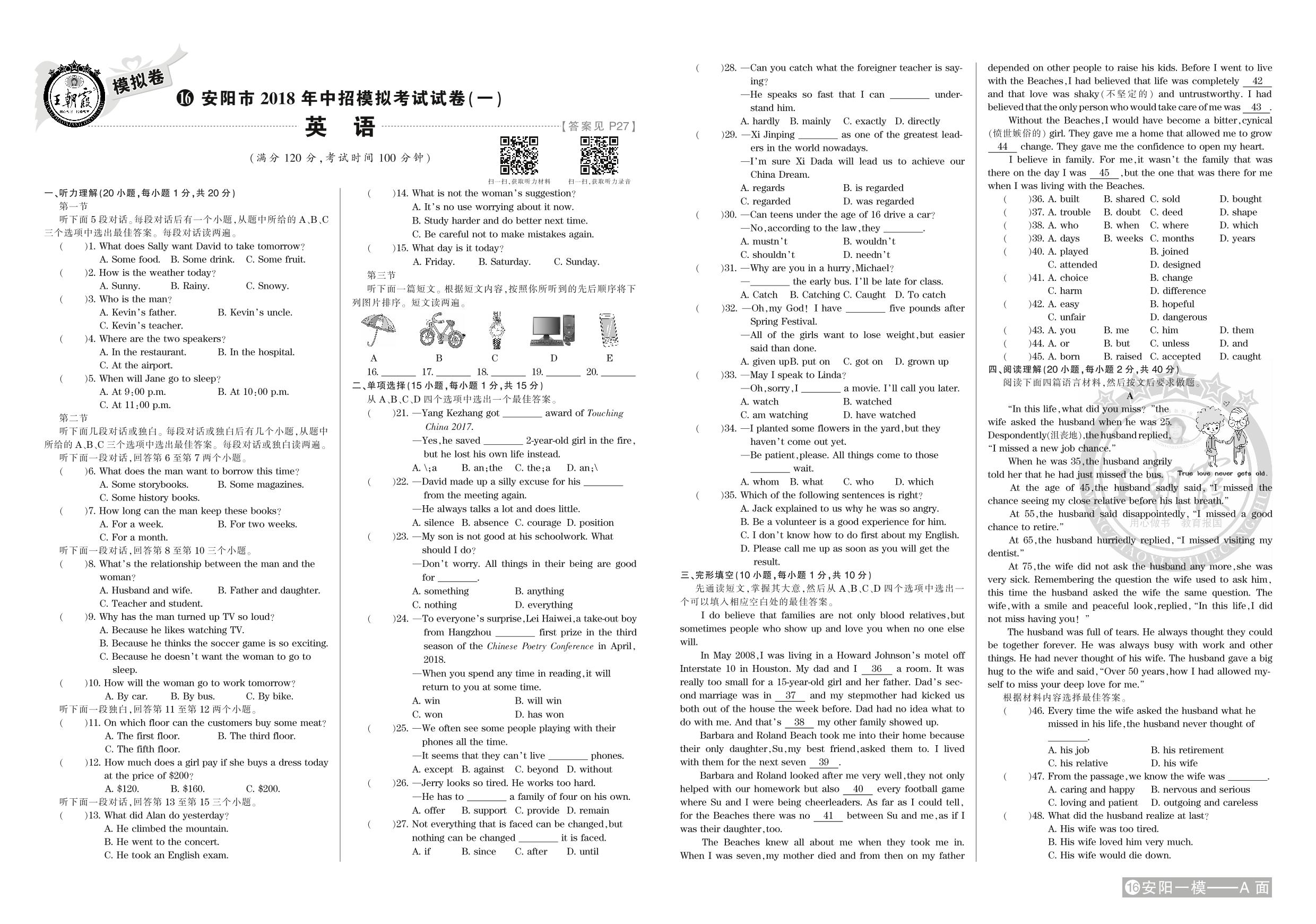 安阳市2018年中招模拟考试试卷(一)【16】