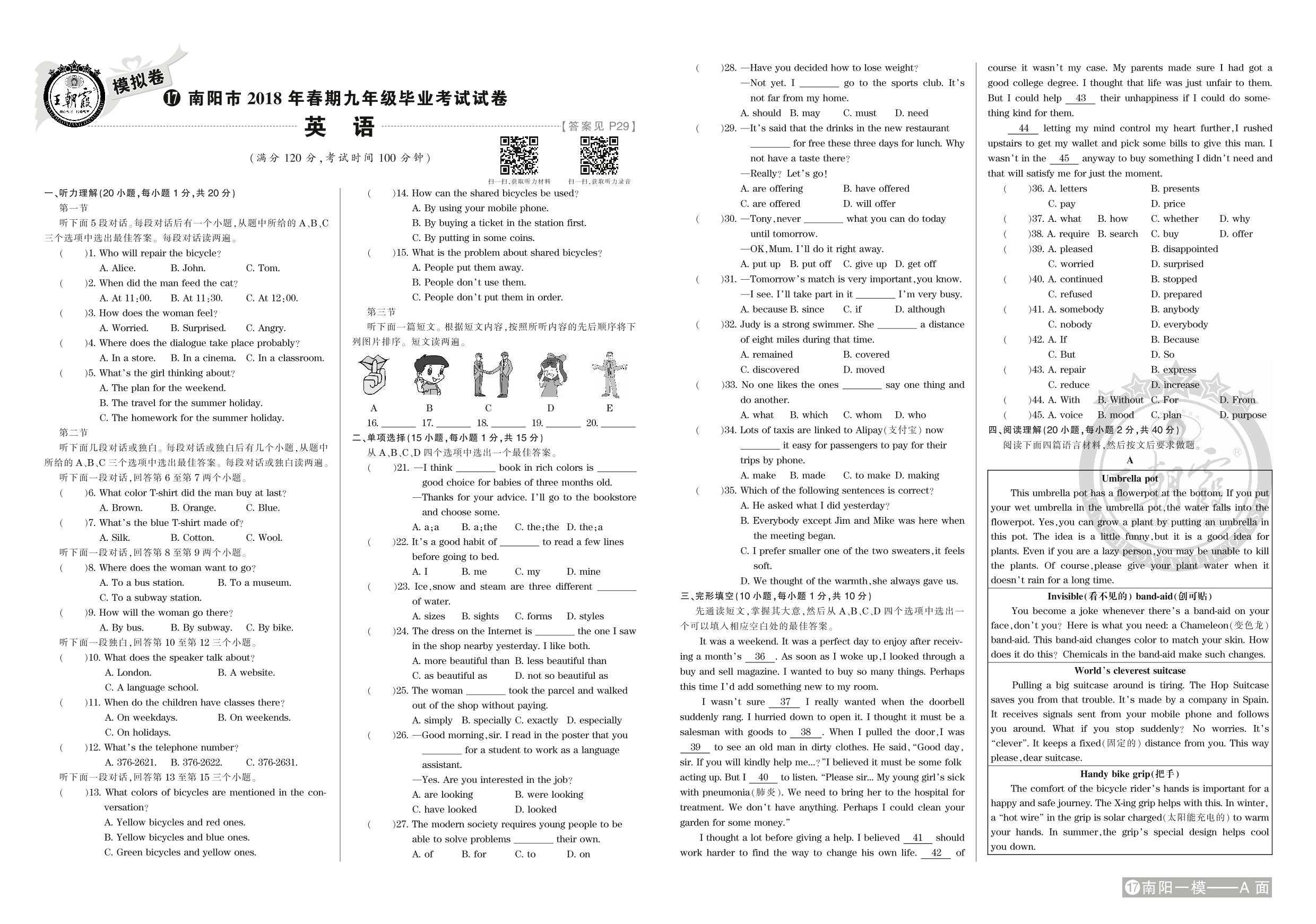 南阳市2018年春期九年级毕业考试试卷【17】
