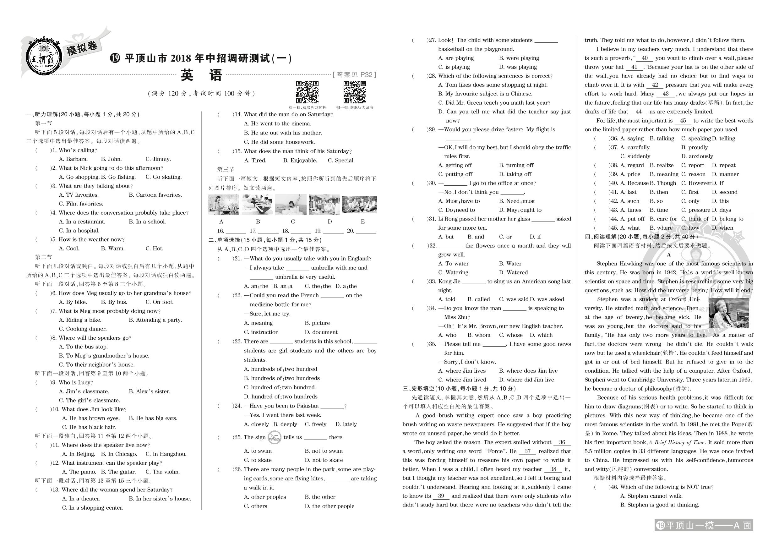 平顶山市2018年中招调研测试(一)【19】