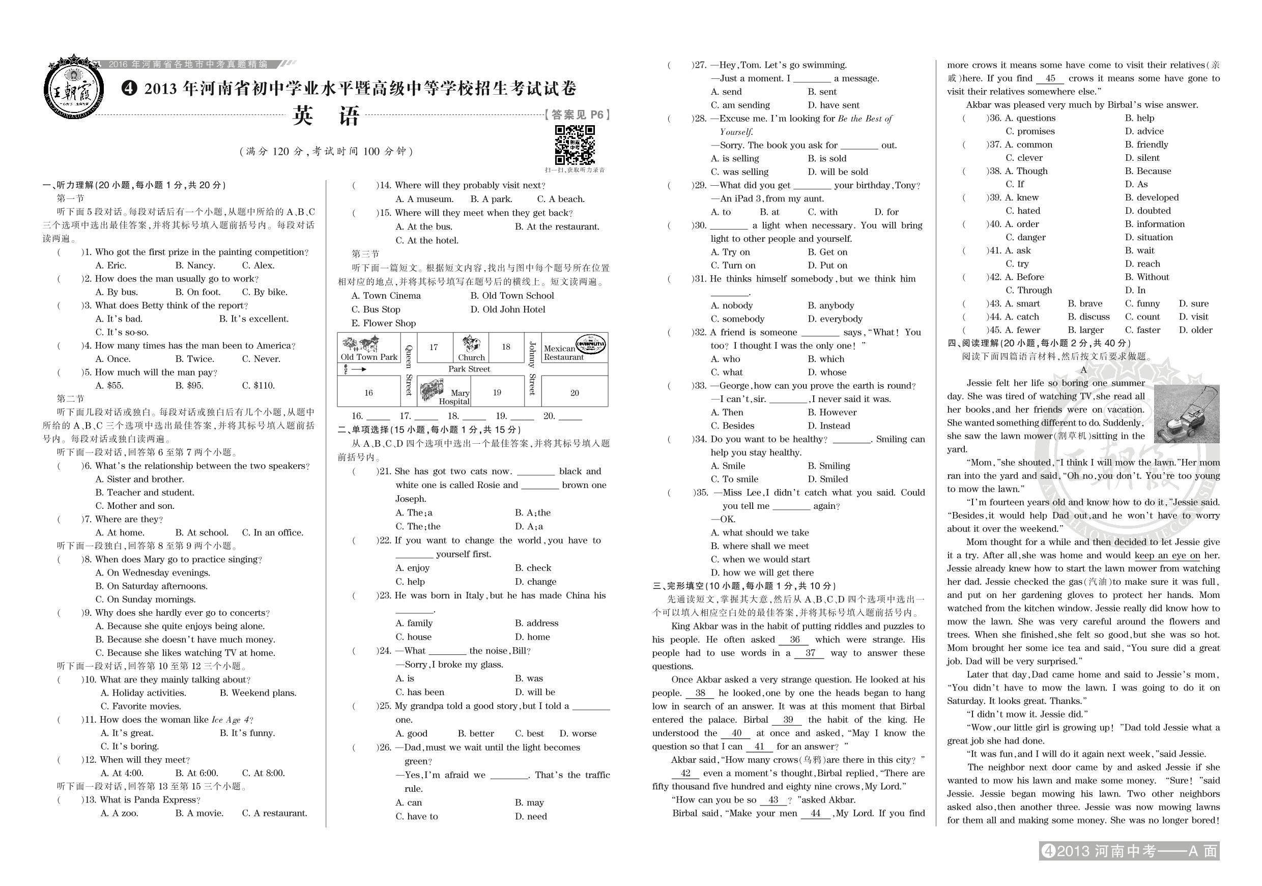 2013年河南省初中学业水平暨高级中等学校招生考试试卷【4】
