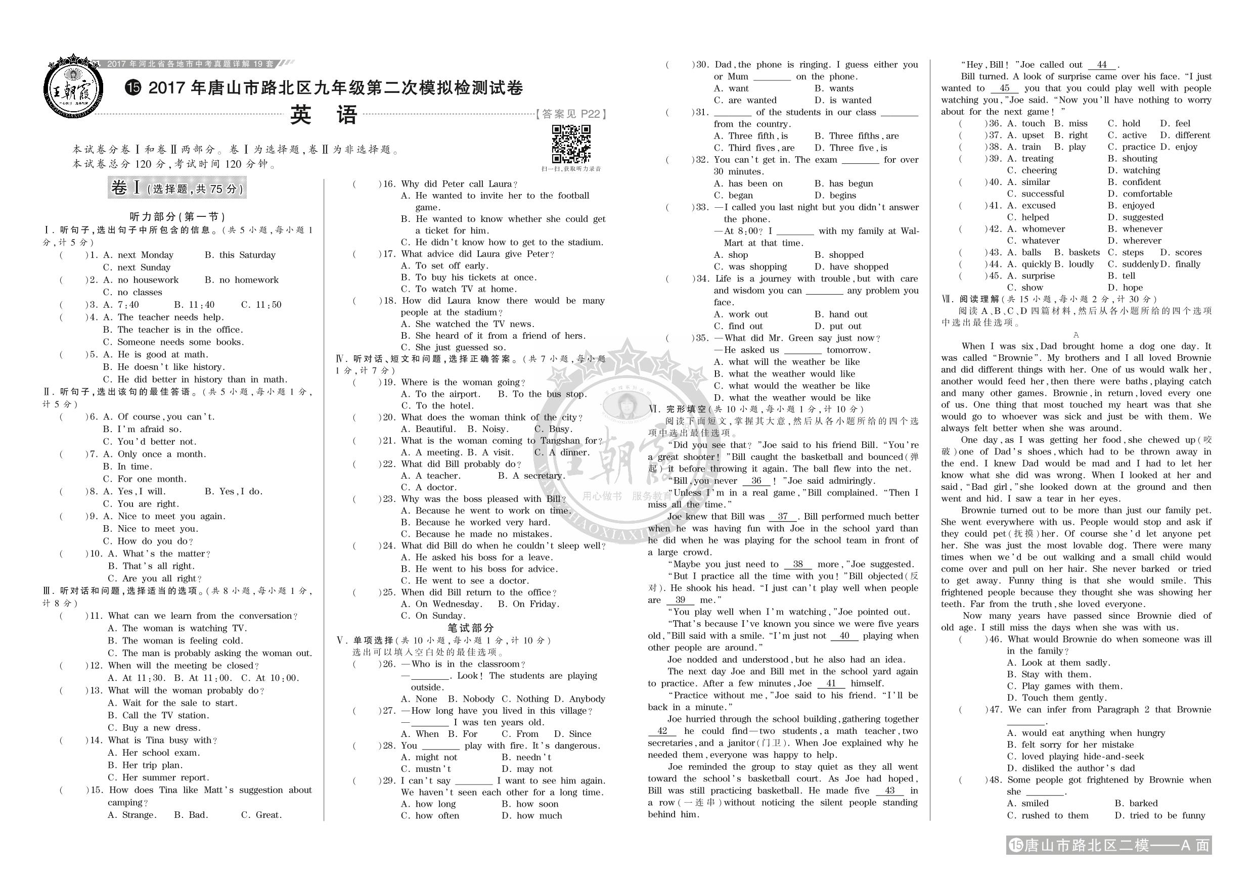 2017年唐山市路北区九年级第二次模拟测试卷【15】