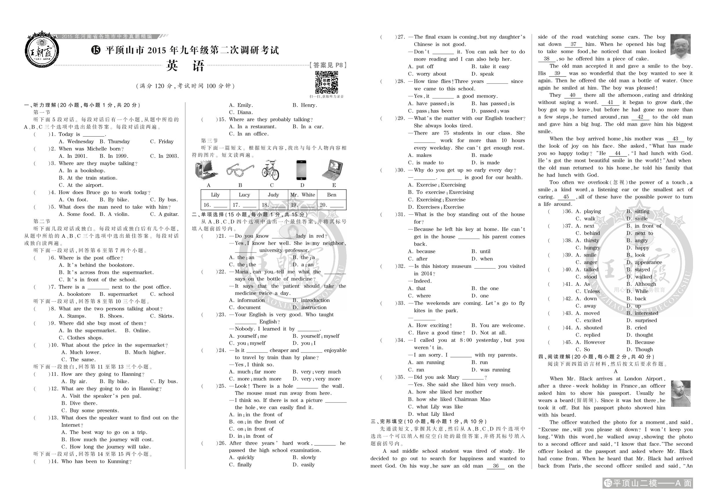 平顶山市2015年九年级第二次调研考试【15】
