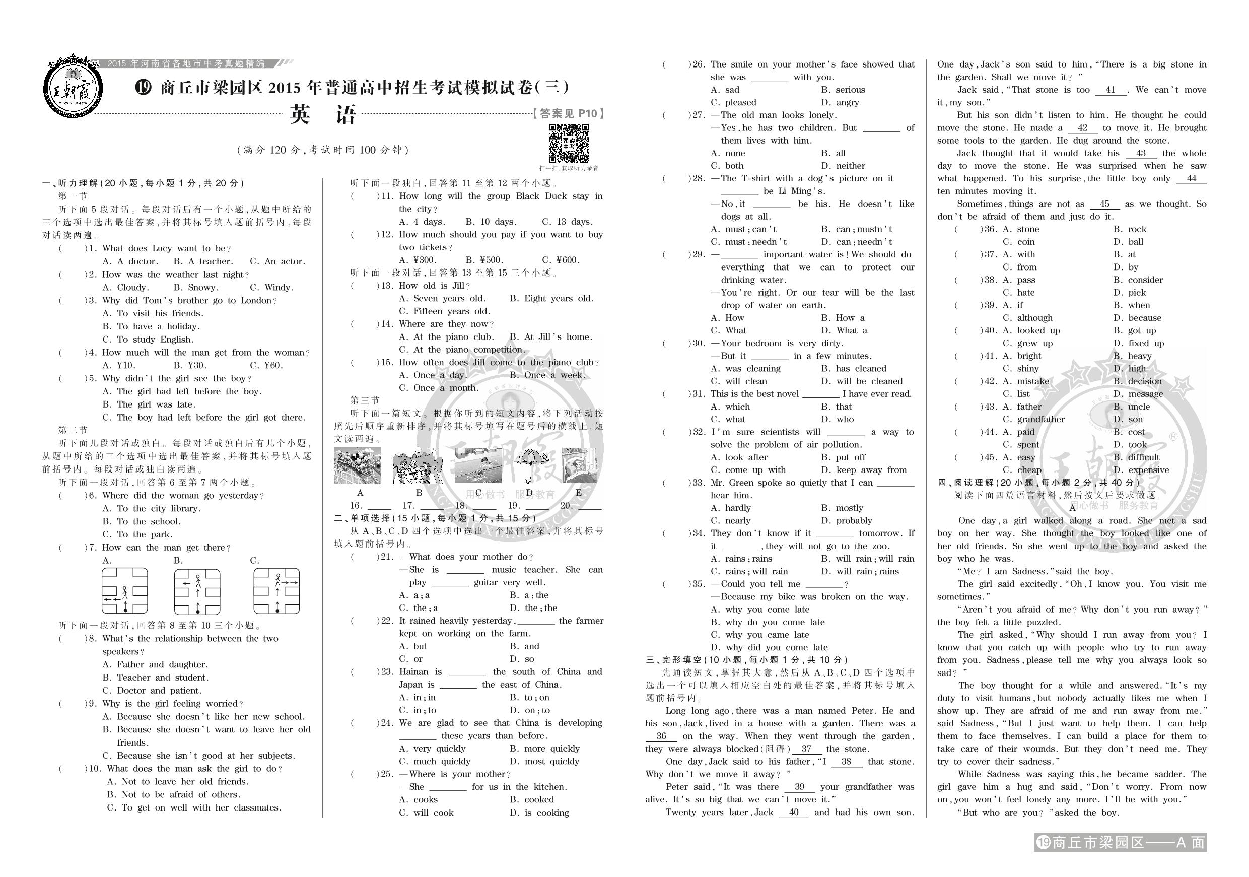 商丘市梁园区2015年普通高中招生考试模拟试卷(三)【19】
