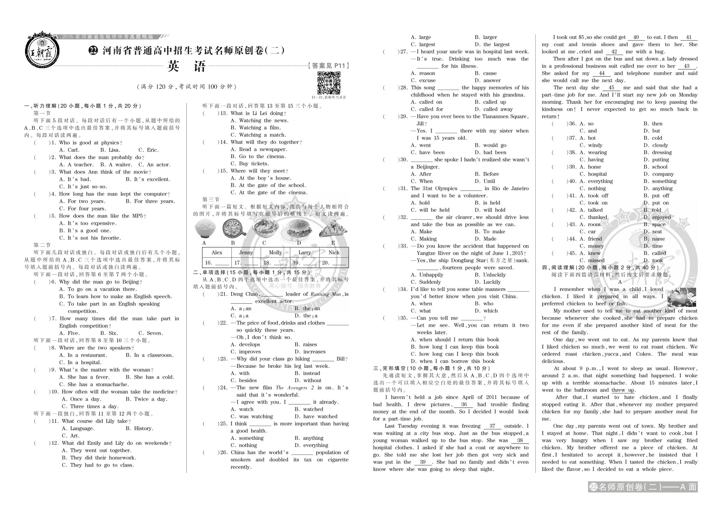 河南省普通高中招生考试名师原创卷(二)【22】