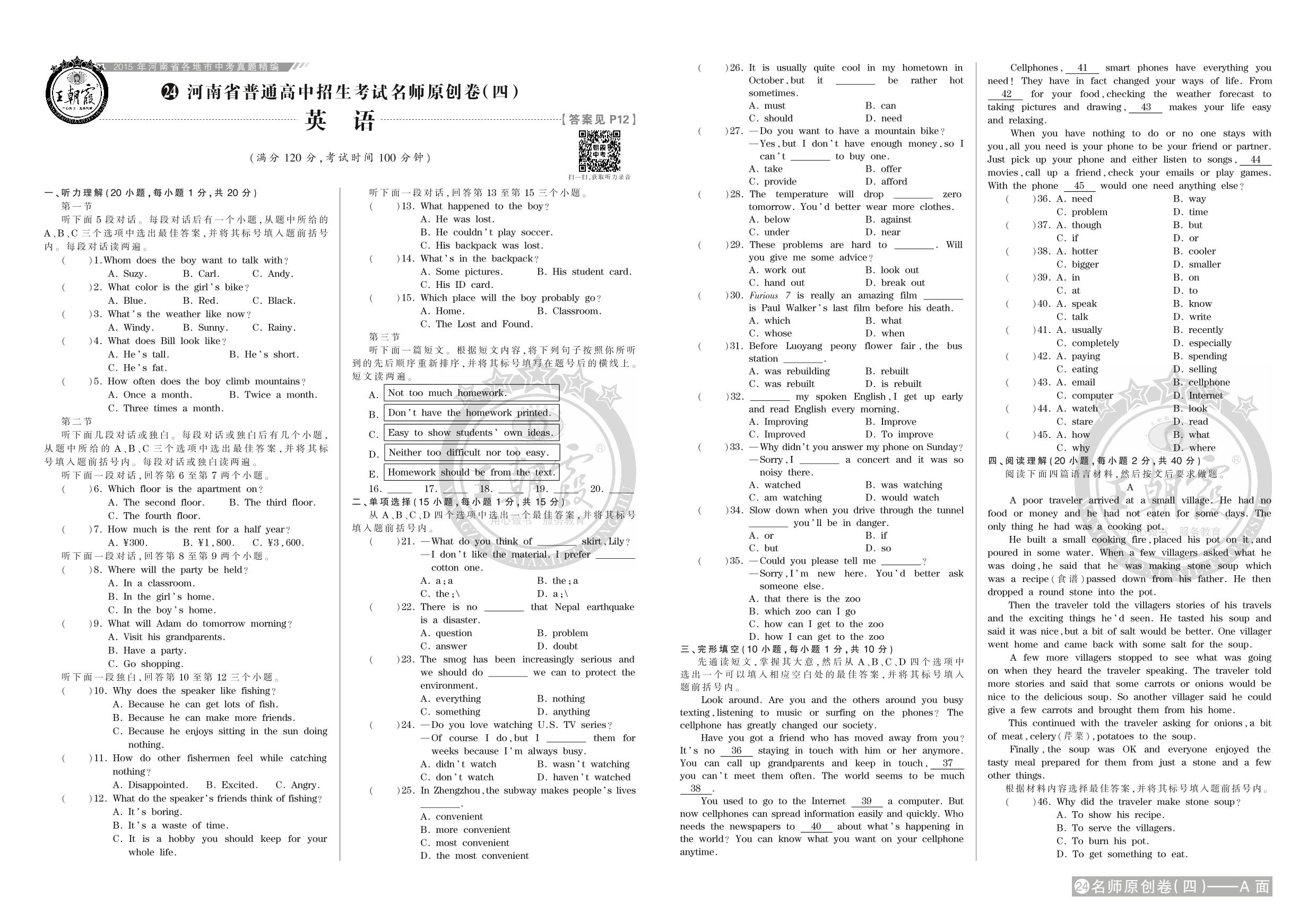 河南省普通高中招生考试名师原创卷(四)【24】