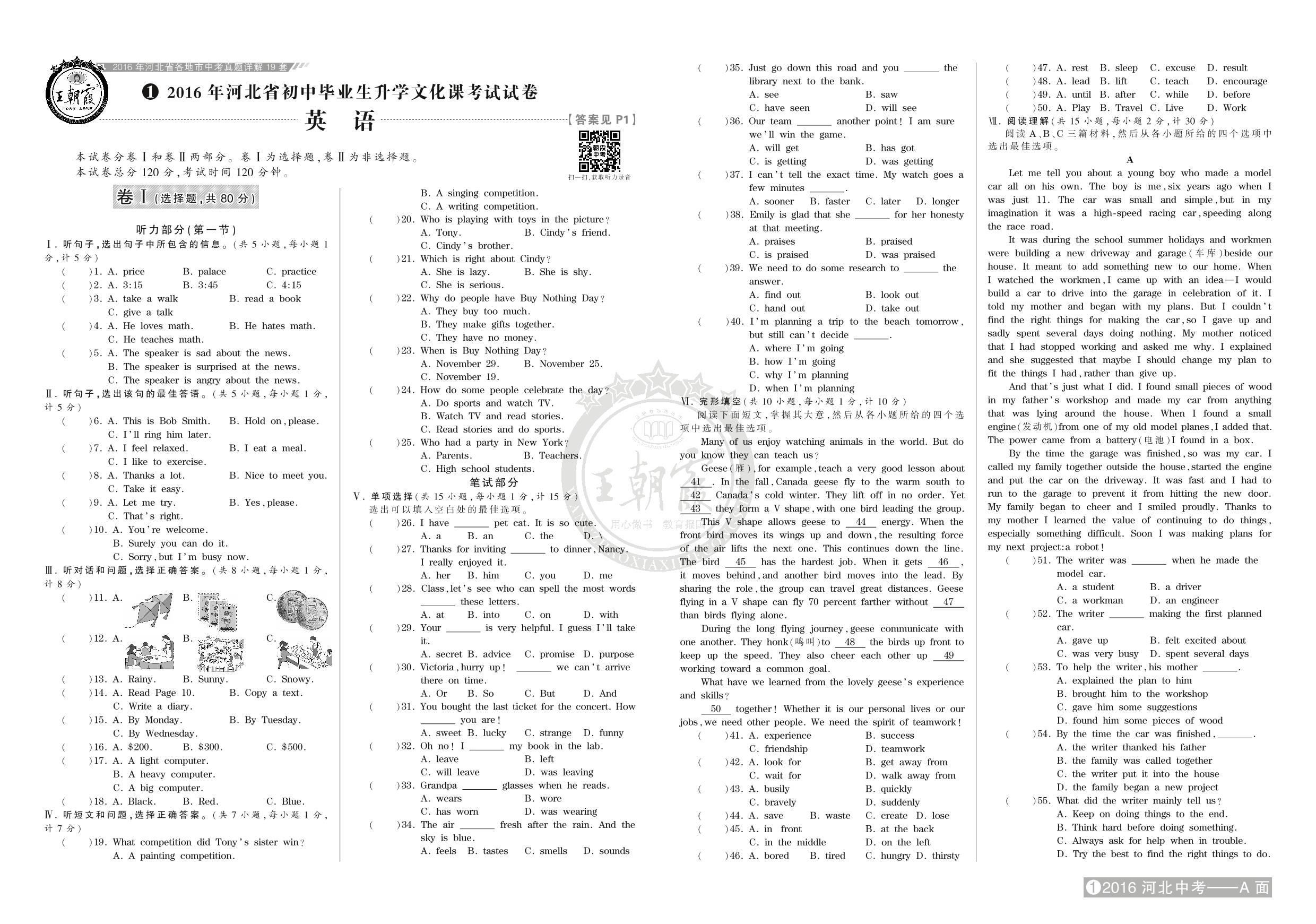 2016年河北省初中毕业生升学文化课考试试卷【1】