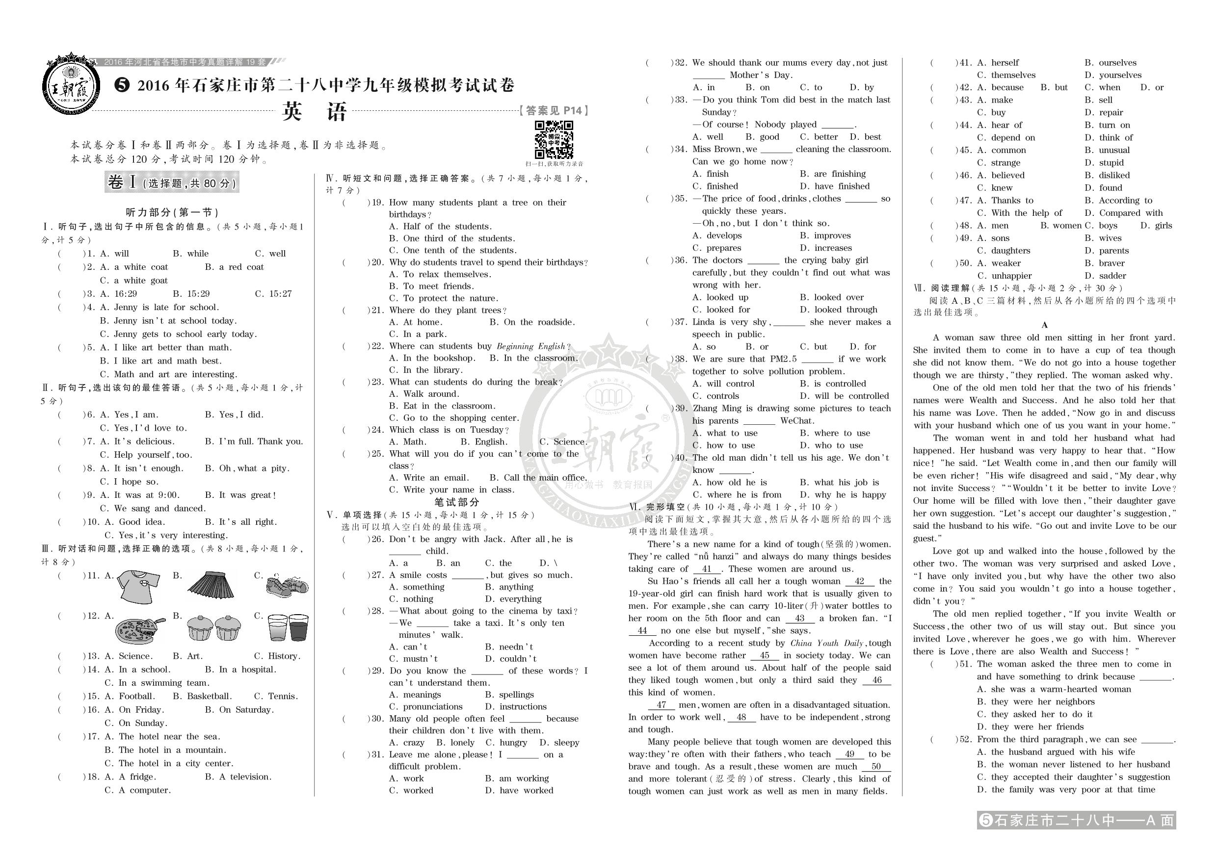 石家庄市第二十八中学九年级模拟考试试卷【5】