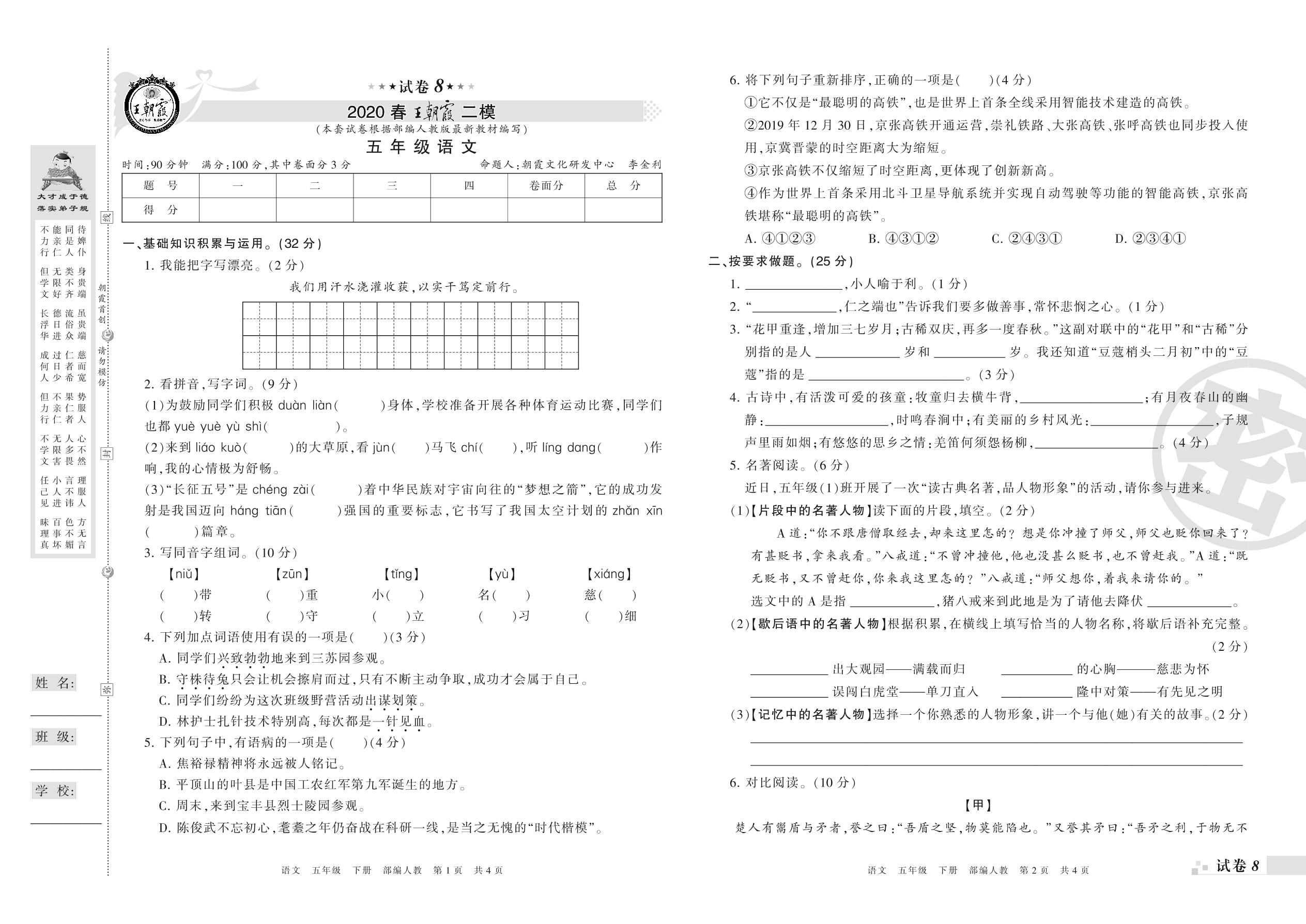 王朝霞期末模拟卷五年级下册语文(人教版)_R210801193233【8】