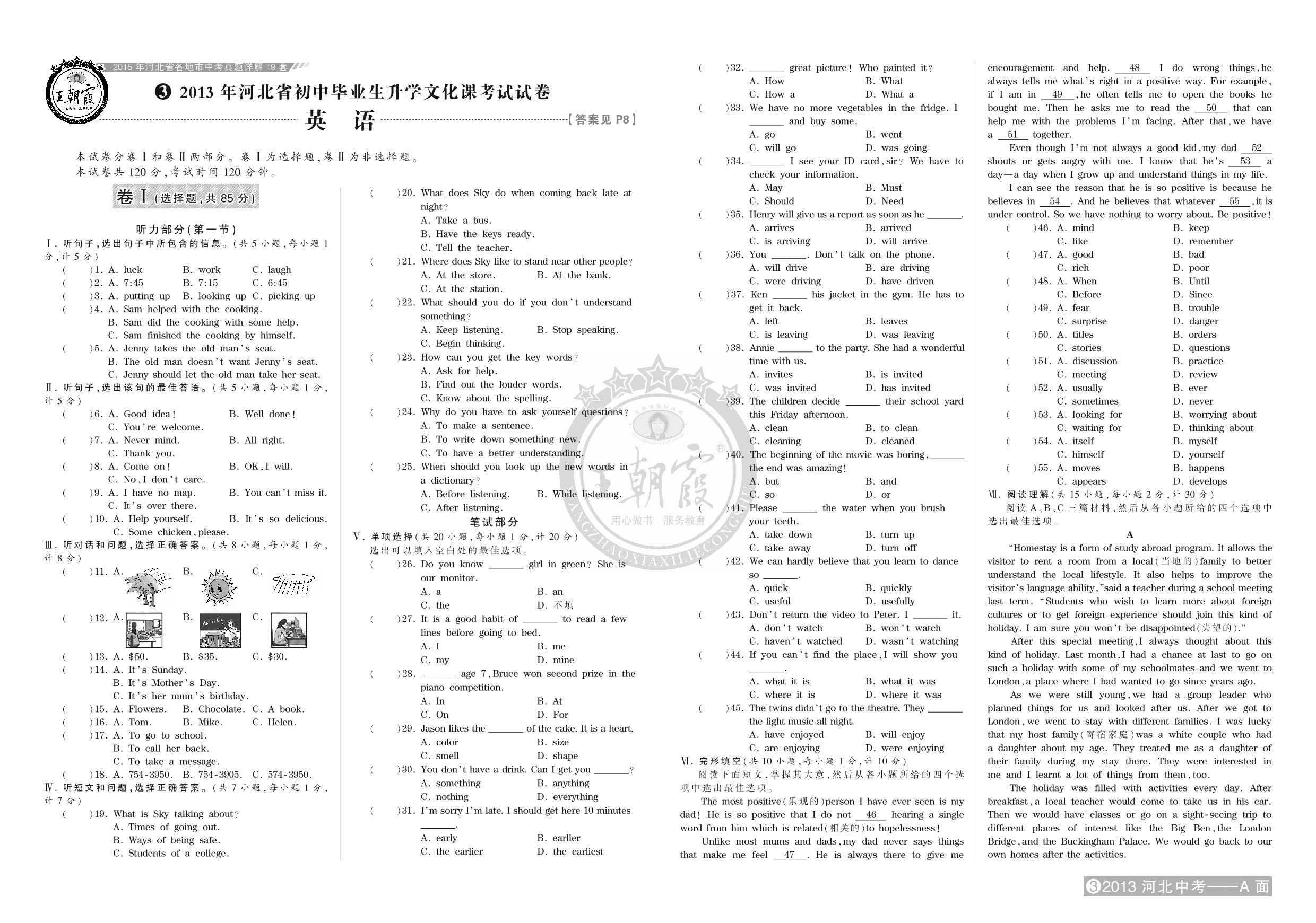 2013年河北省初中毕业生升学文化课考试试卷【3】