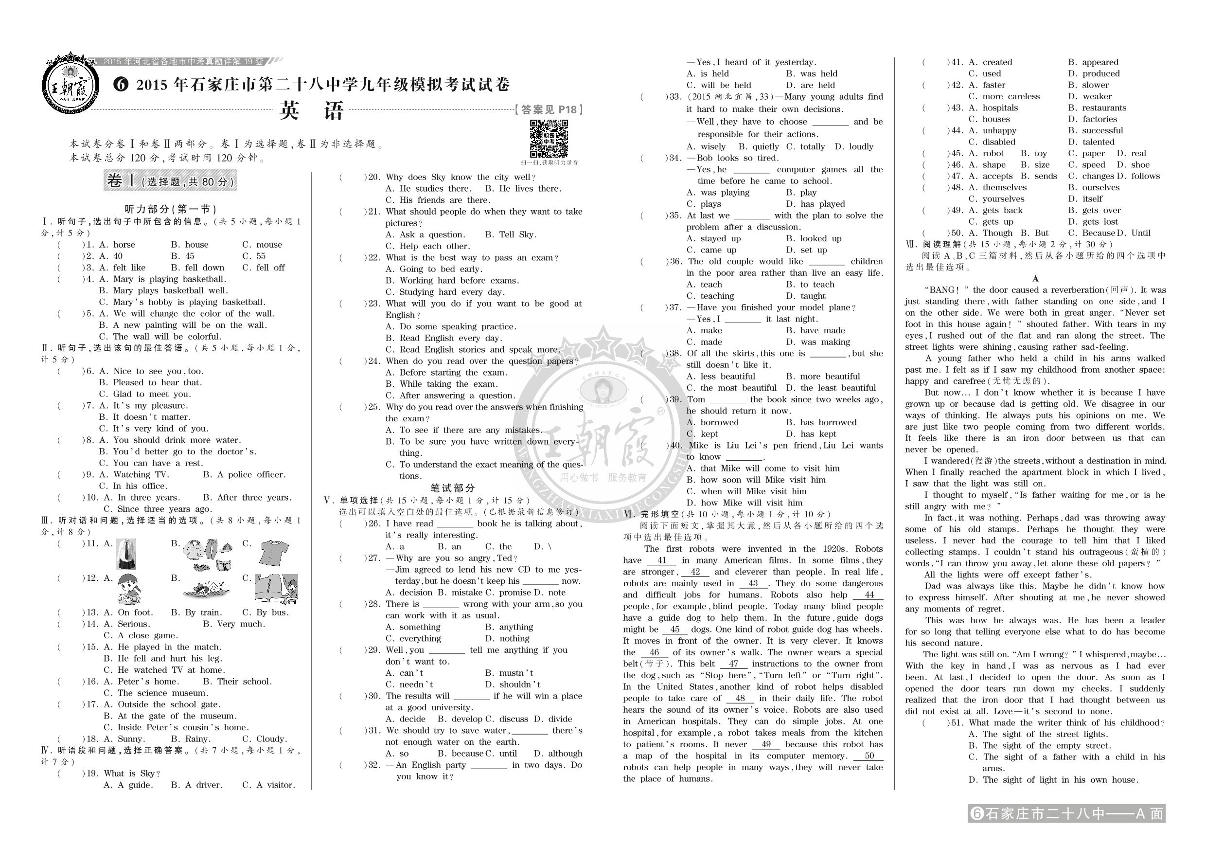 石家庄市第二十八中学九年级模拟考试试卷【6】