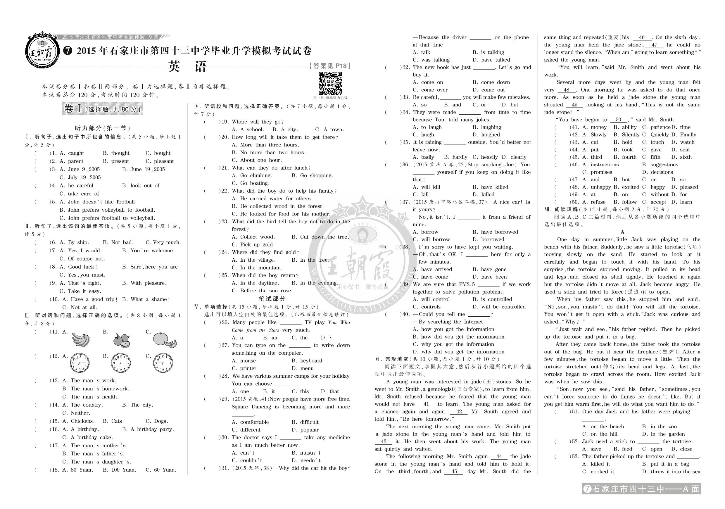石家庄市第四十三中学毕业升学模拟考试试卷【7】