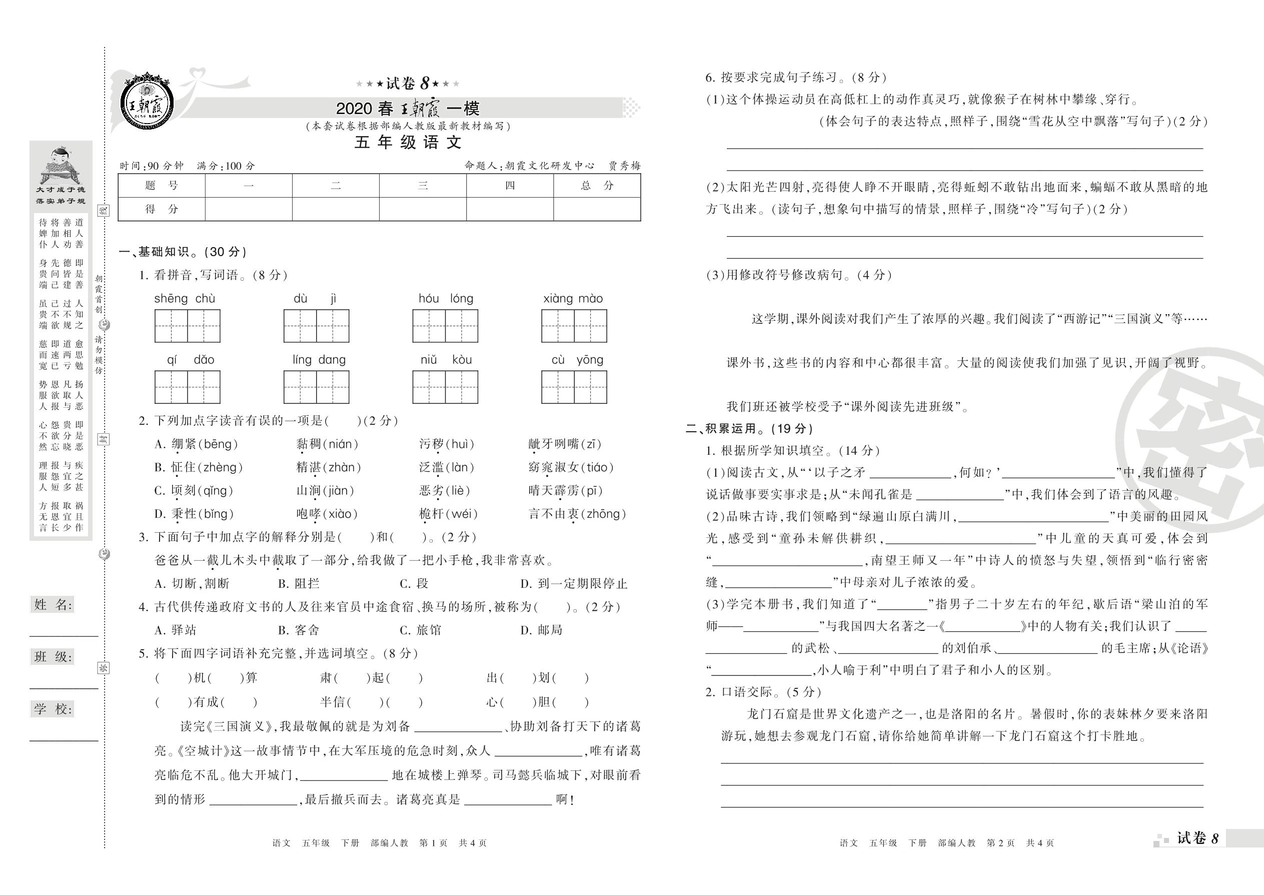 王朝霞期末模拟卷五年级下册语文(人教版)_R210801193257【8】