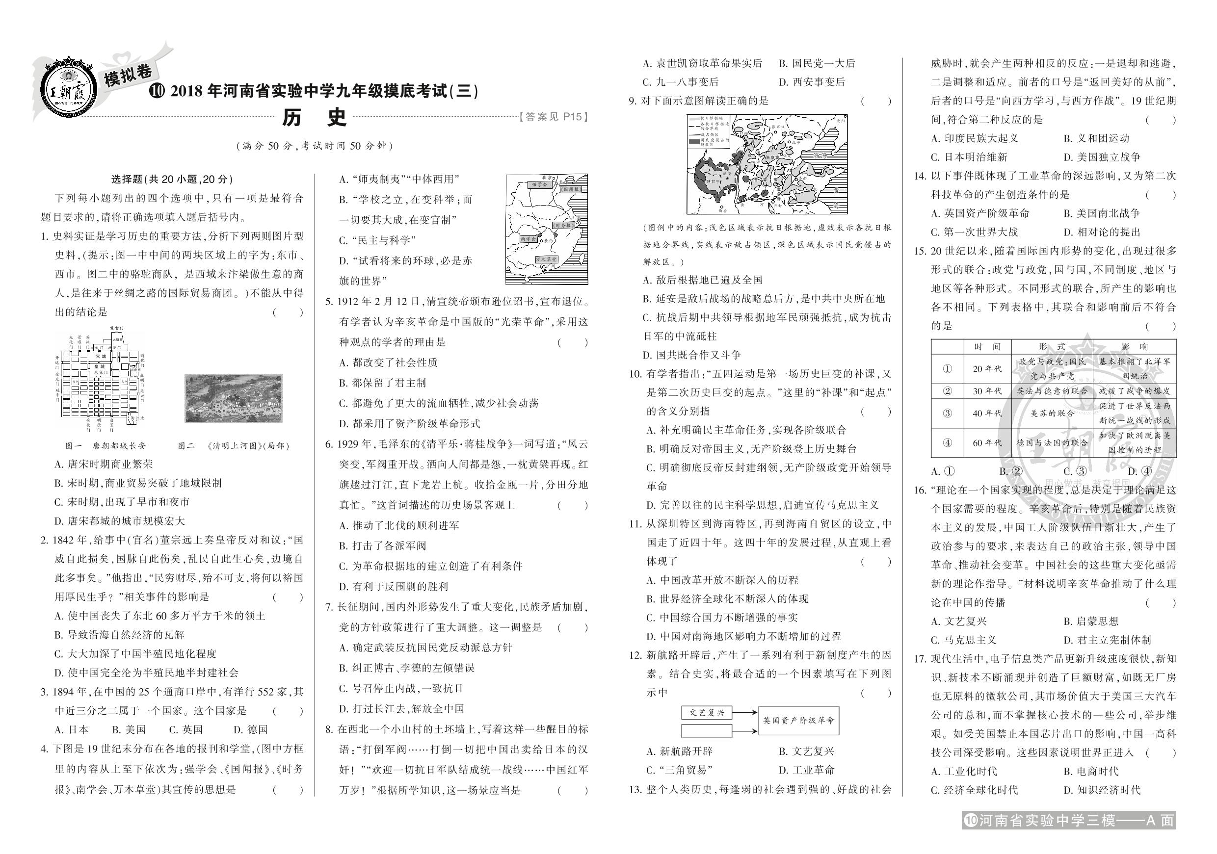 2018年河南省实验中学九年级摸底考试(三)【10】