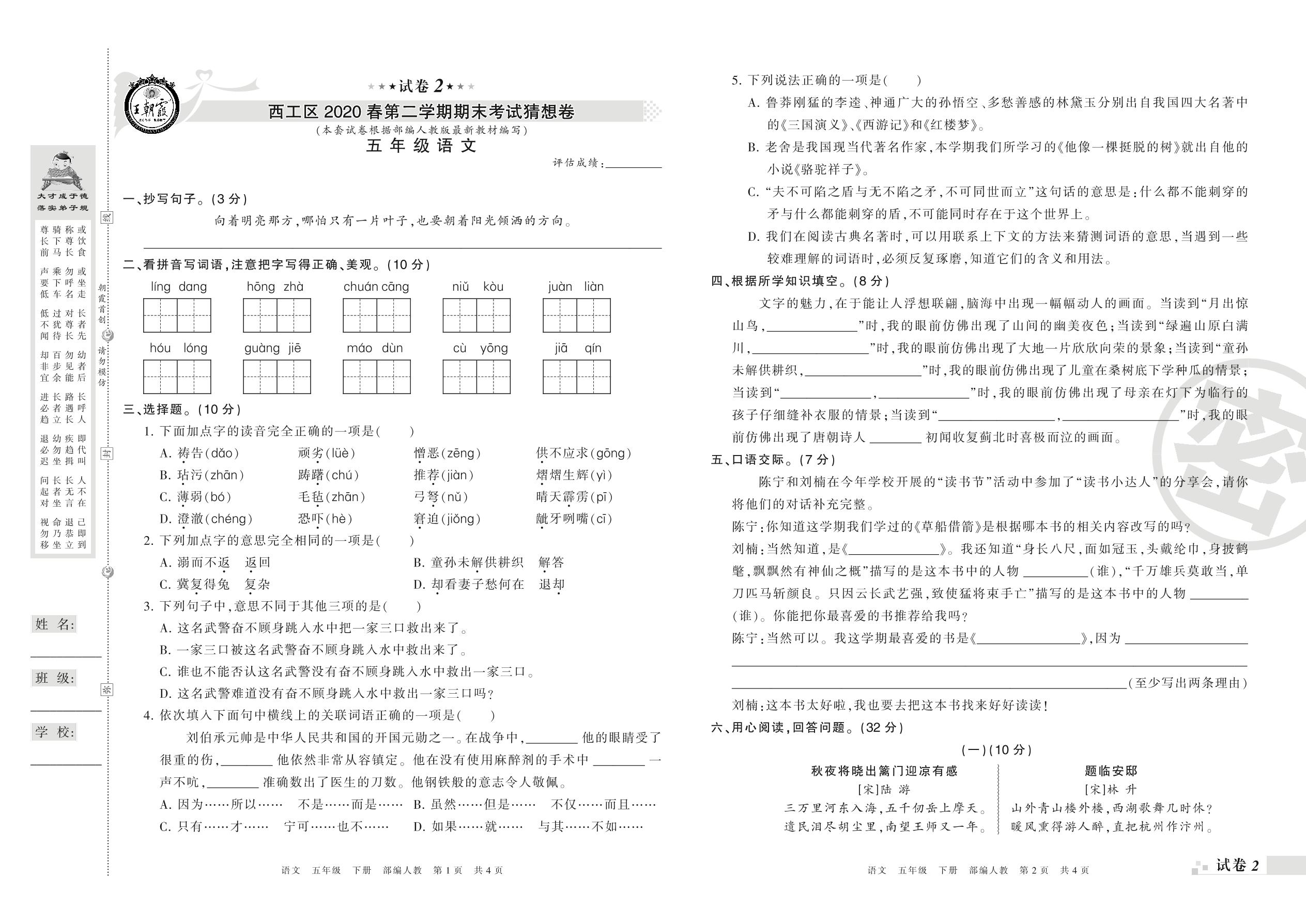 2018-2019学年第二学期洛阳市西工区猜想卷五年级语文试卷(人教版)【2】