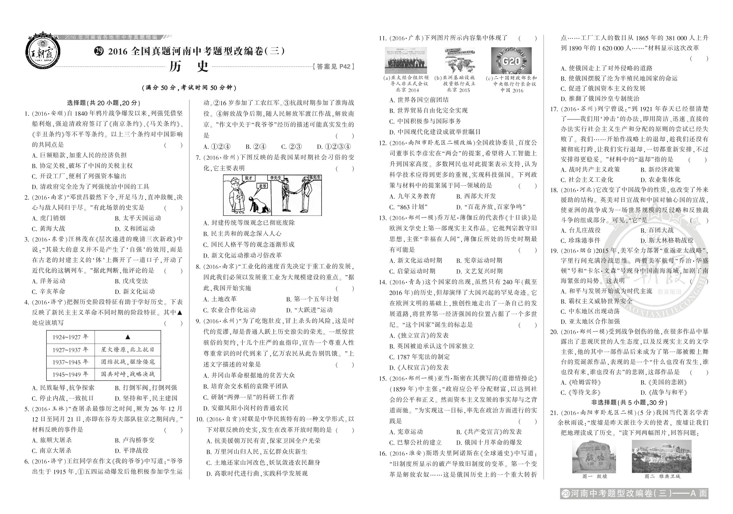 九年级历史全国通用中考卷