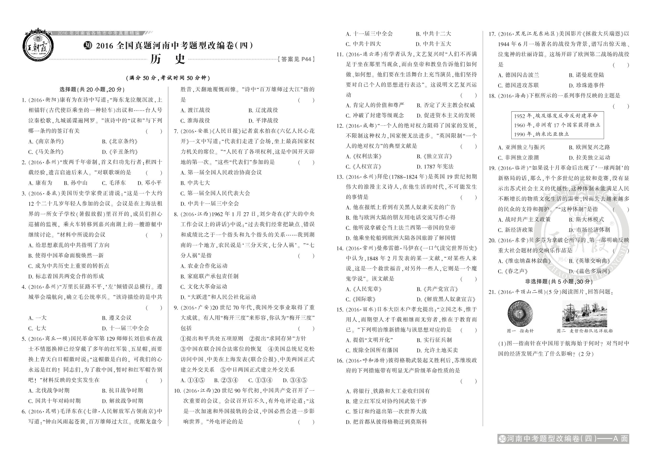 九年级历史全国通用中考卷
