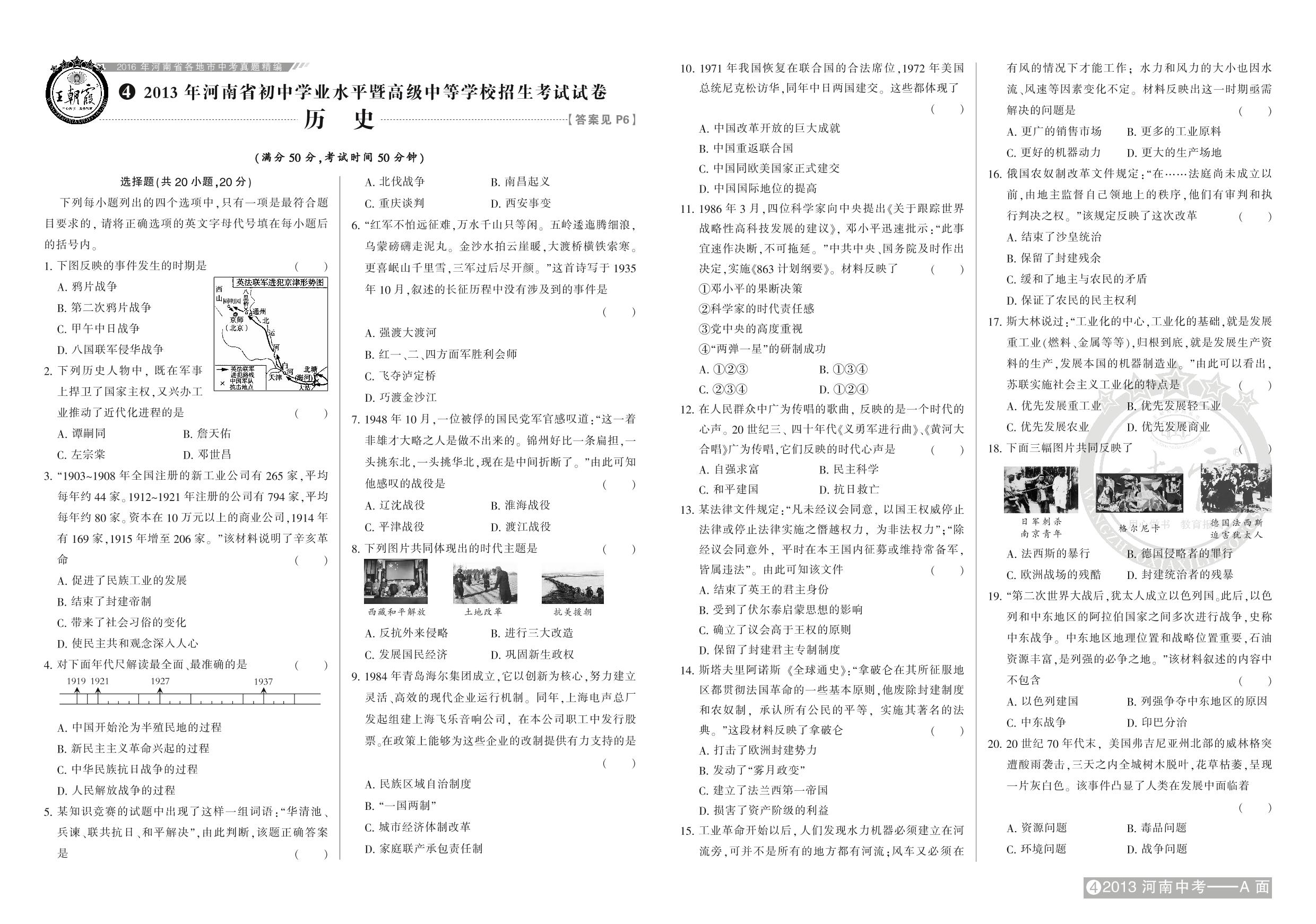 2013年河南省初中学业水平暨高级中等学校招生考试试卷【4】