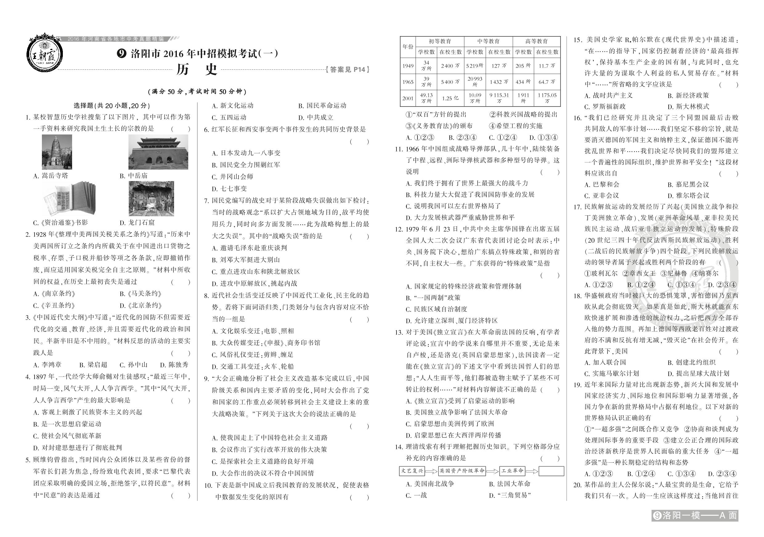 洛阳市2016年中招模拟考试试卷(一)【9】