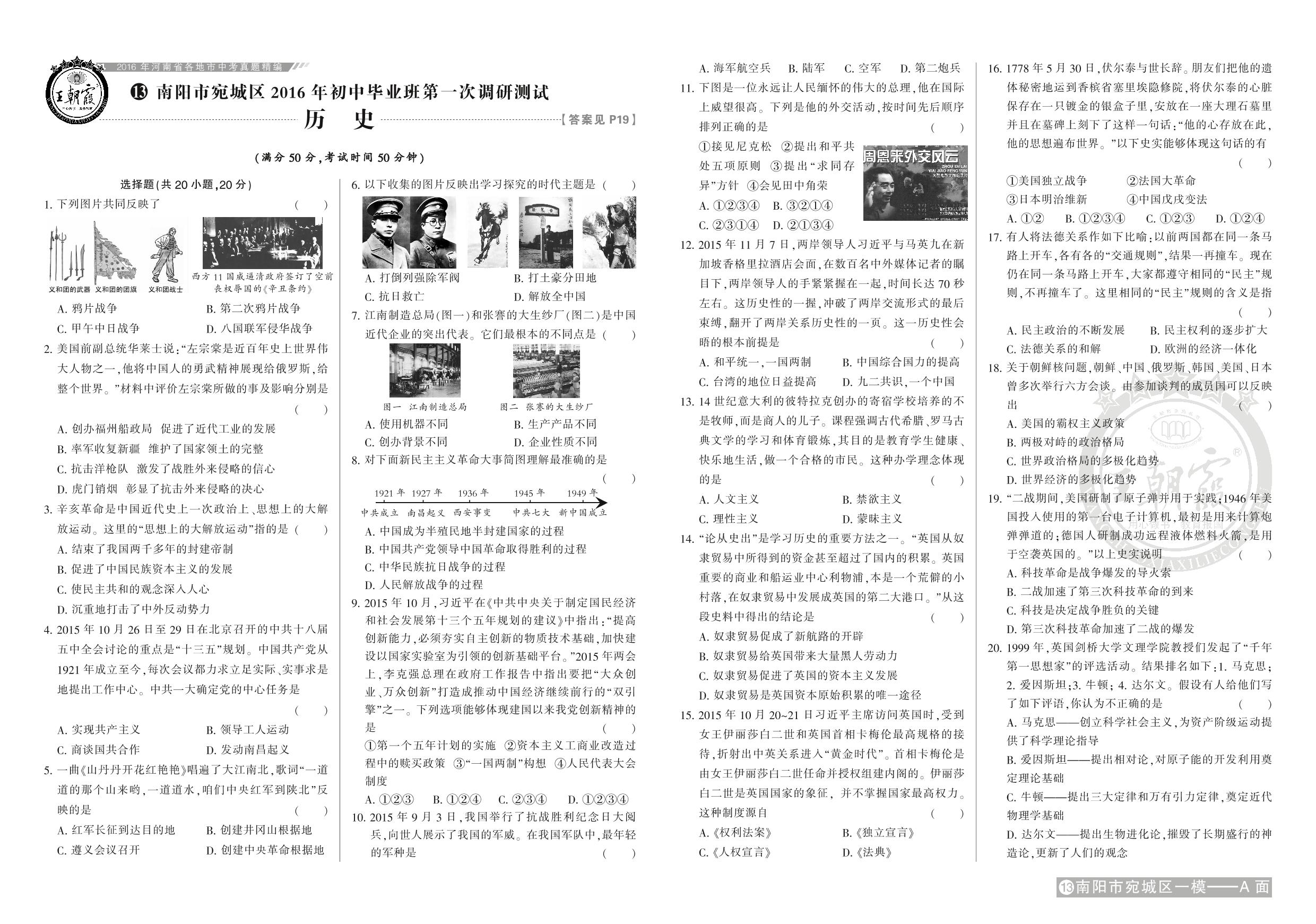 南阳市宛城区2016年初中毕业班第一次调研测试【13】