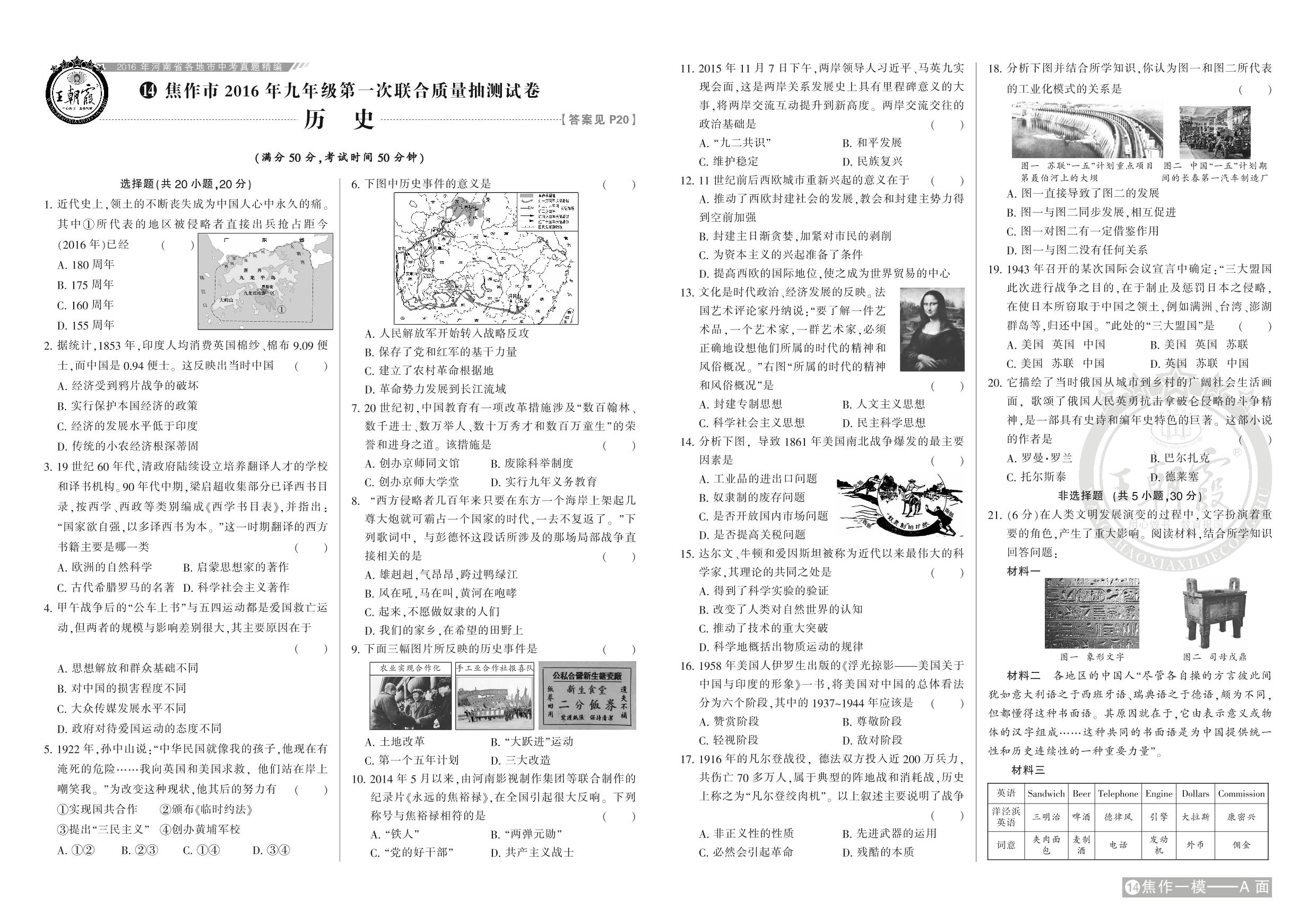 焦作市2016年九年级第一次联合质量抽测试卷【14】