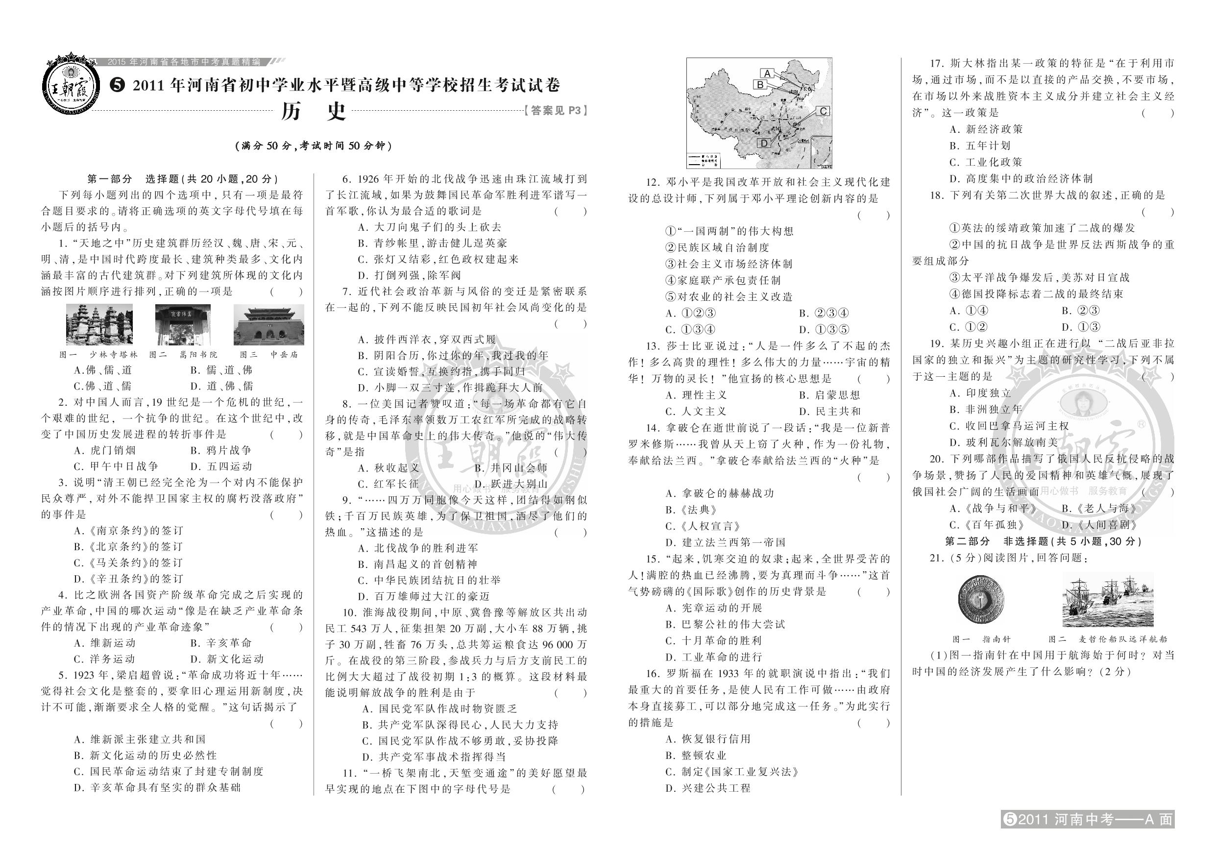 2011年河南省初中学业水平暨高级中等学校招生考试试卷【5】