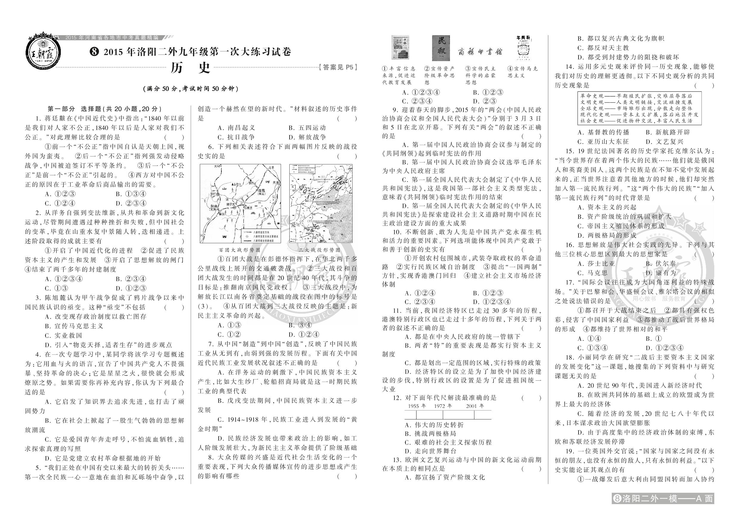 九年级历史全国通用中考卷