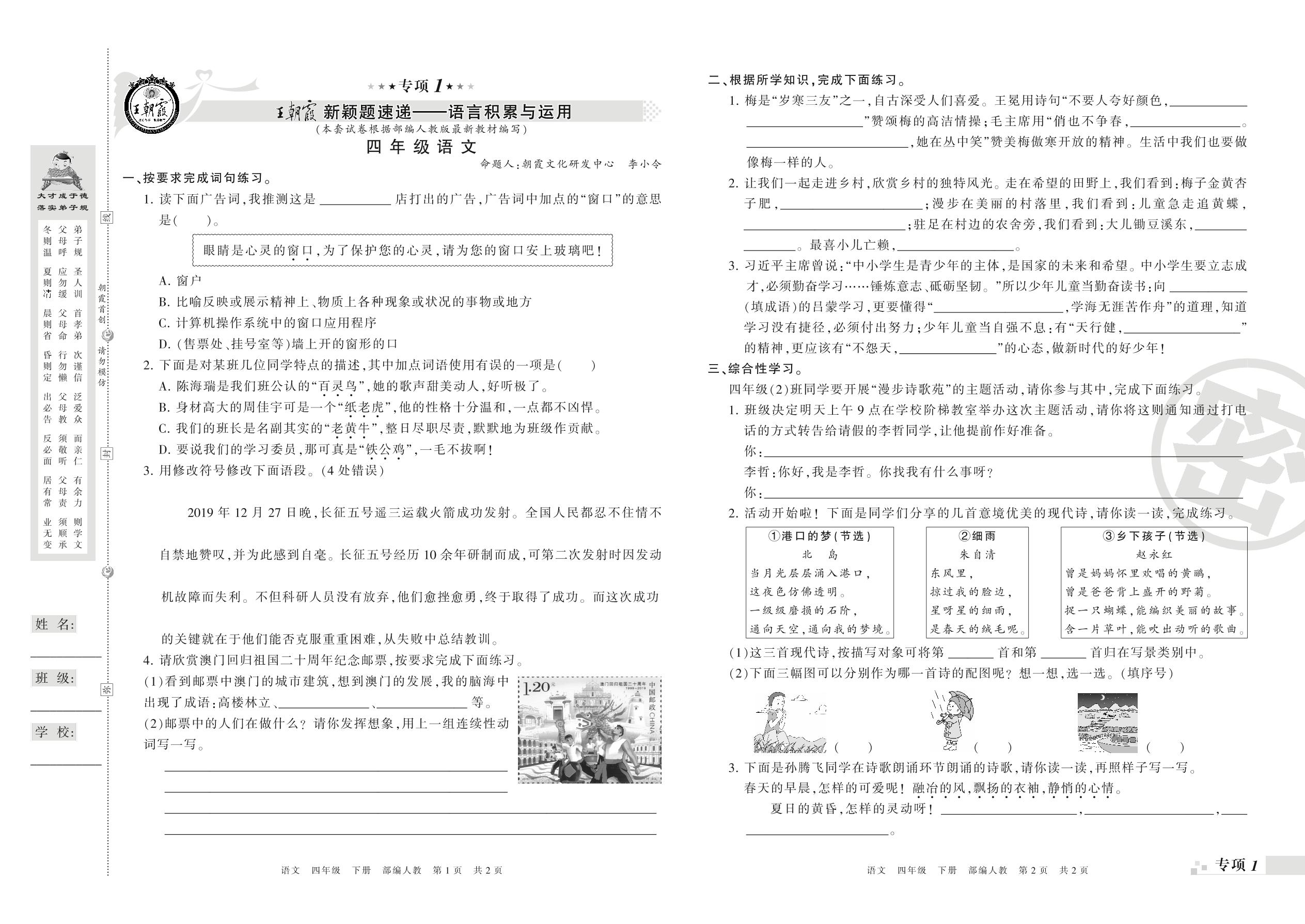 王朝霞期末专项卷——新颖题速递:语言积累与运用、非连续性文本阅读四年级下册语文(人教版)_R210801193448【0】
