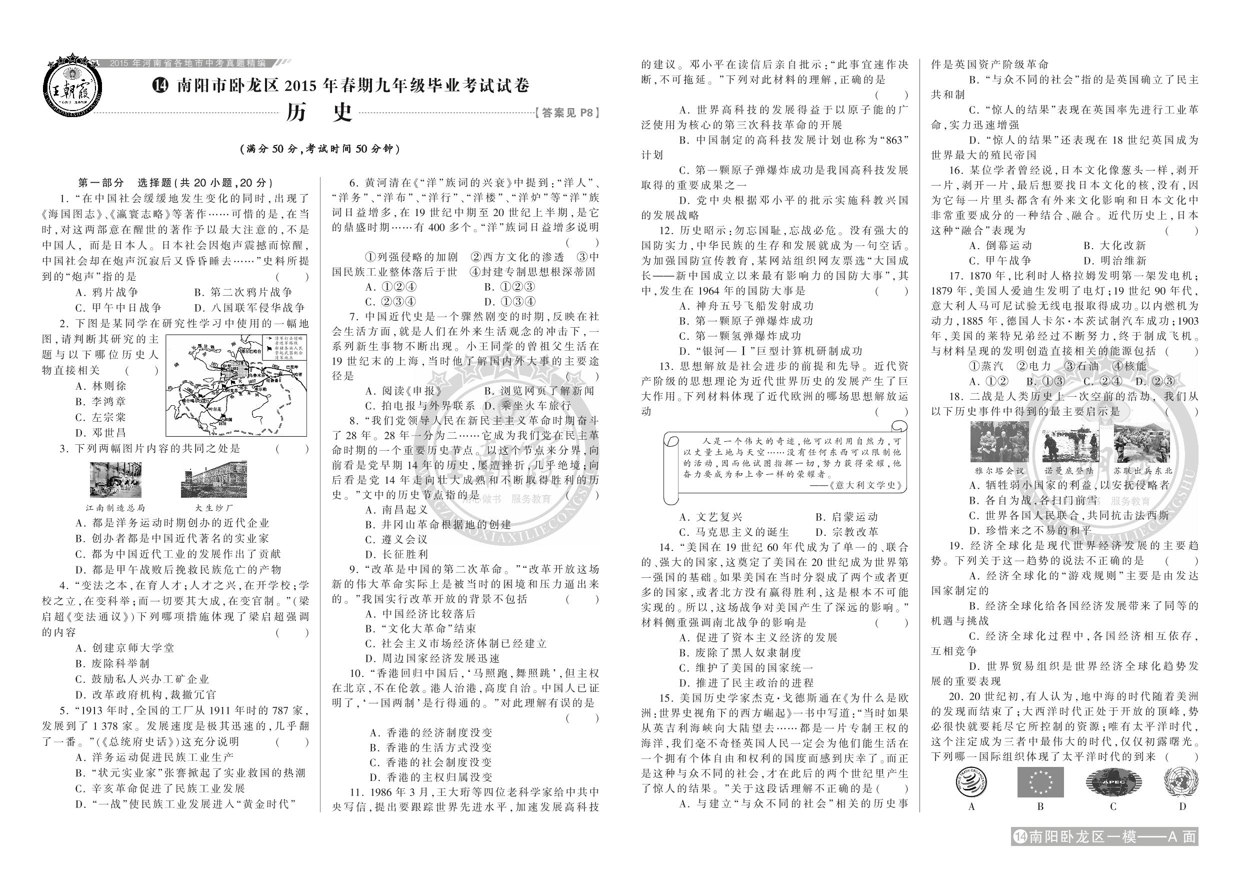 南阳市卧龙区2015年春期九年级毕业考试试卷【14】