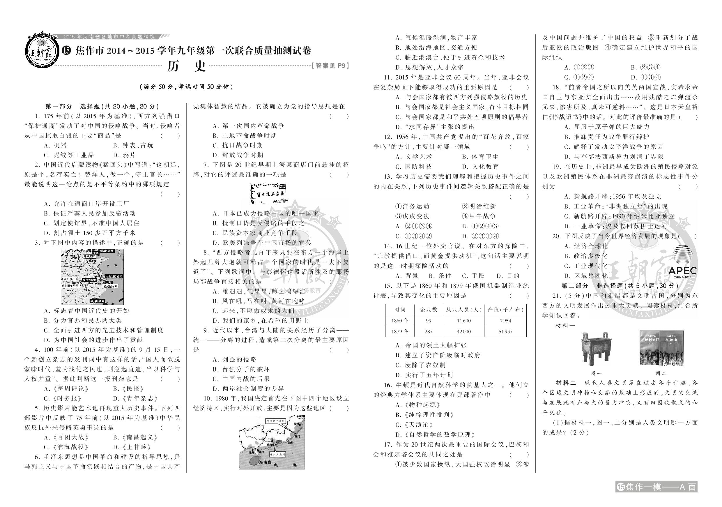 焦作市2014~2015学年九年级第一次联合质量抽测试卷【15】