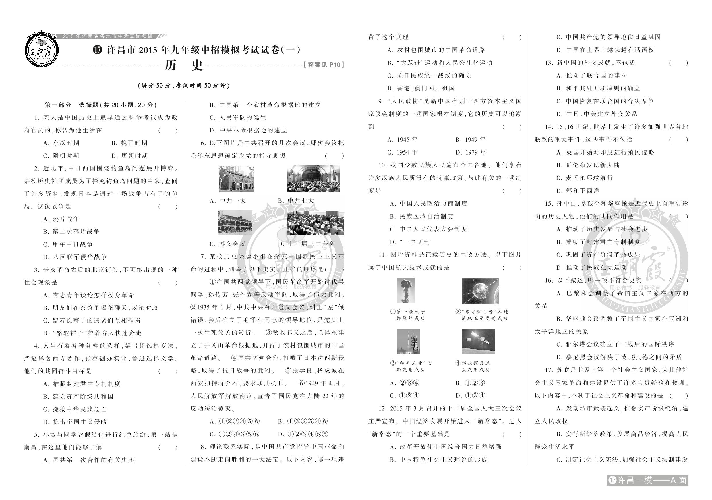 许昌市2015年九年级中招模拟考试试卷(一)【17】
