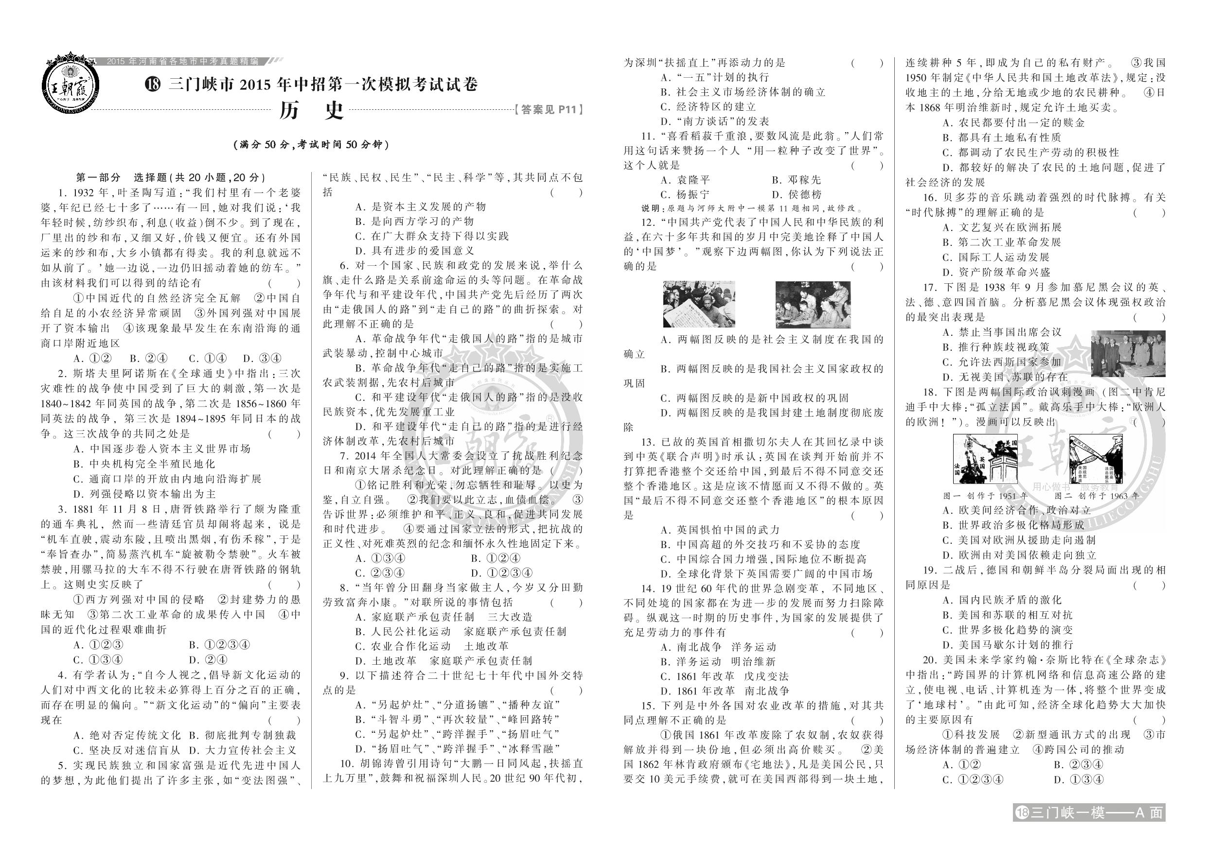 三门峡市2015年中招第一次模拟考试试卷【18】