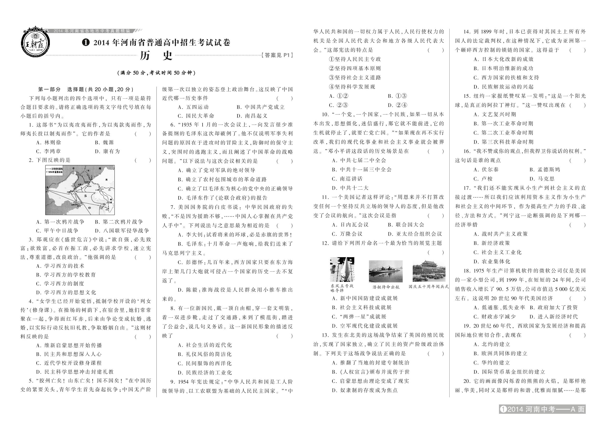 2014年河南省普通高中招生考试试卷【1】