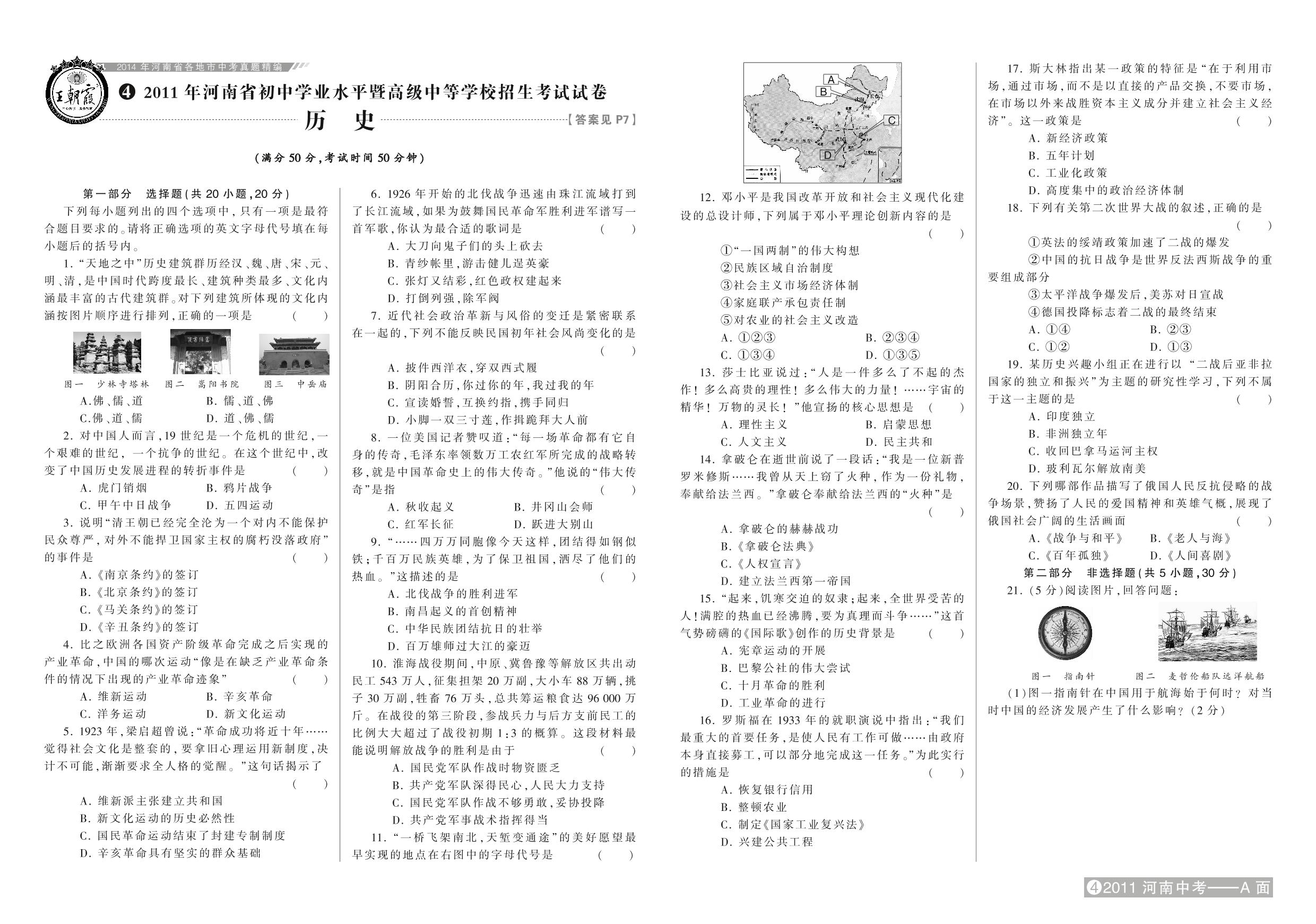 2011年河南省初中学业水平暨高级中等学校招生考试试卷【4】