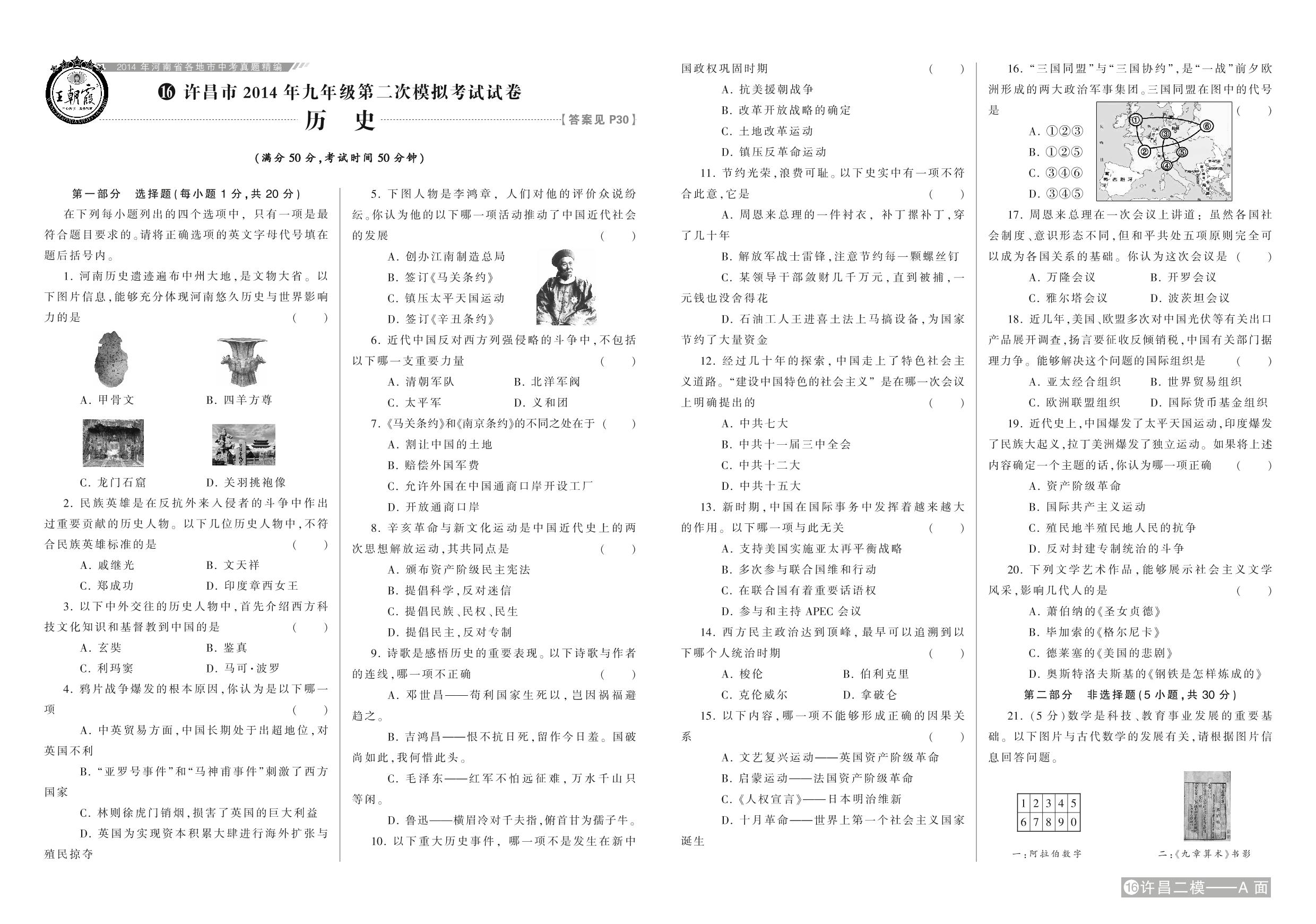 许昌市2014年九年级第二次模拟考试试卷【16】