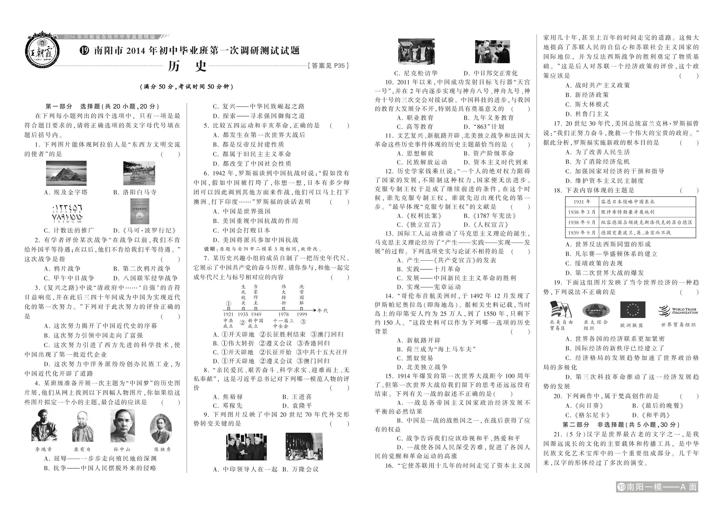 南阳市2014年初中毕业班第一次调研测试试题【19】